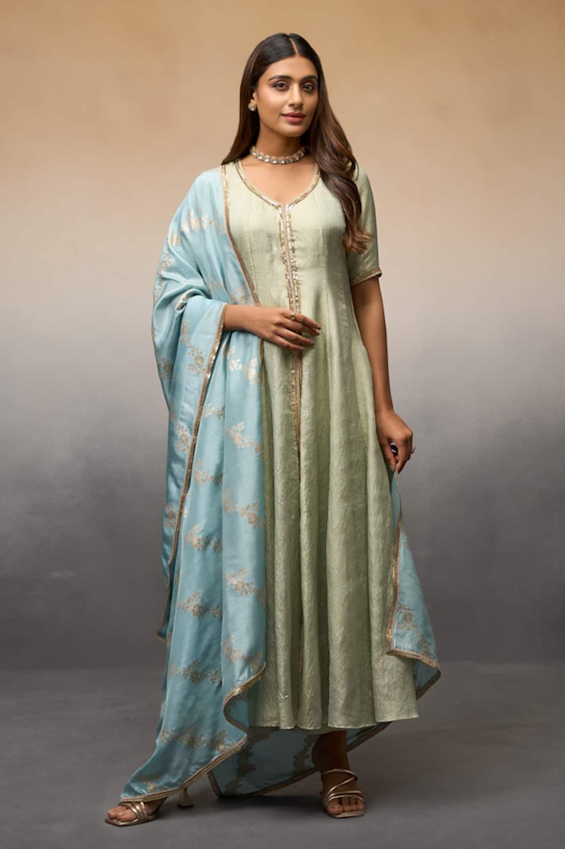 Banarasi Chequered Pattern Anarkali With Dupatta