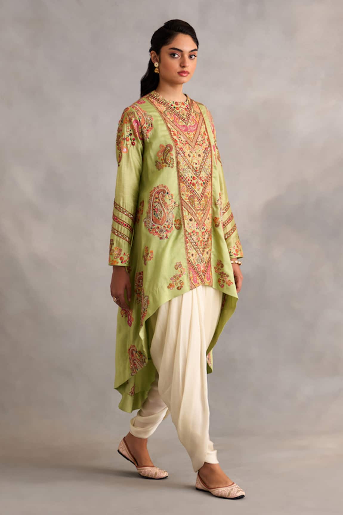 Chanderi silk hand thread embroidered floral jacket with dhoti pants