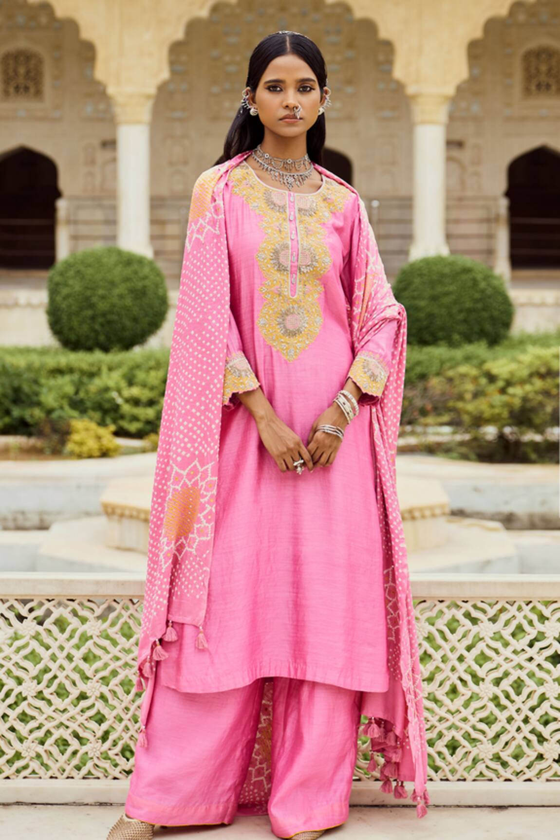 Lotus Embroidered Kurta Set With Silk Chanderi Dupatta
