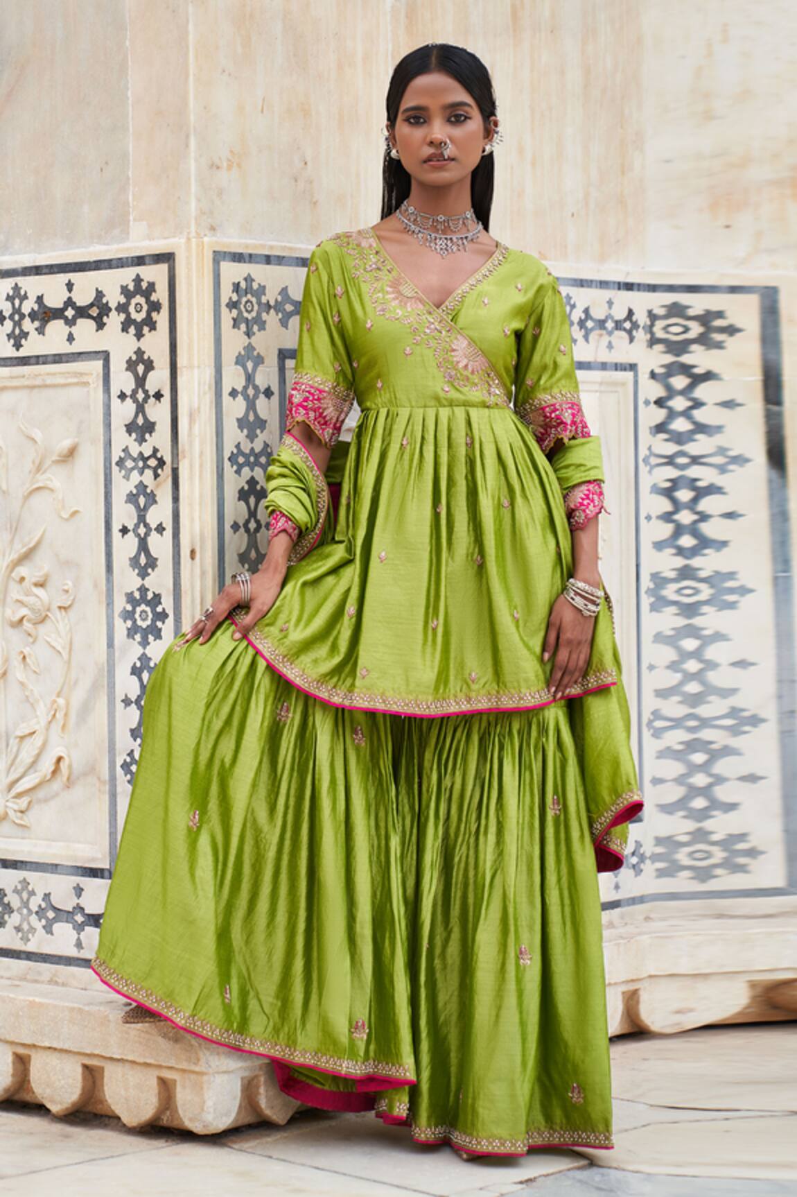 Kairi Thread Embroidered Angarkha & Sharara Set