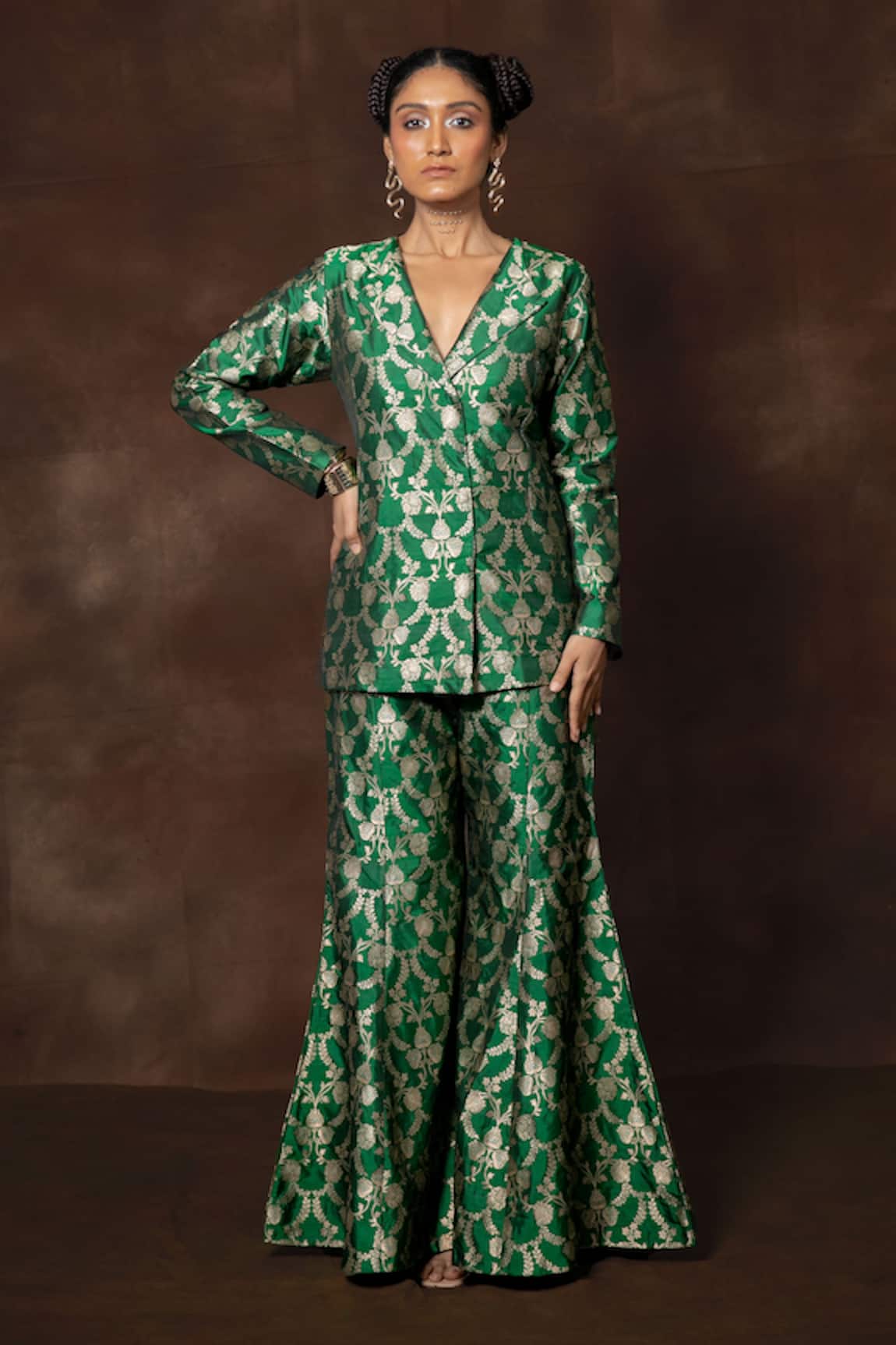 Banarasi Silk Floral Blazer & Gharara Set