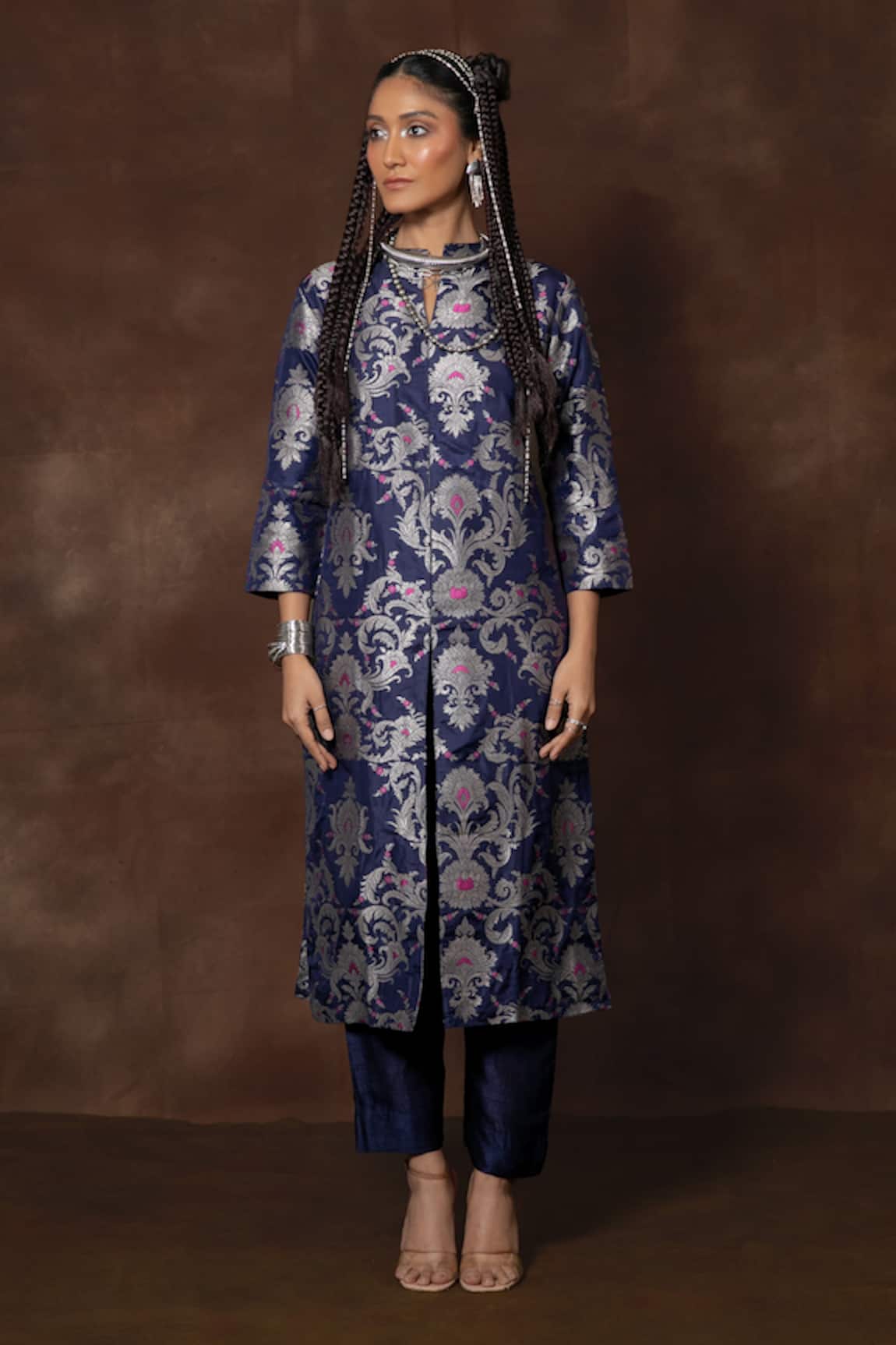 Silk Shirt & Brocade Woven Pant Set