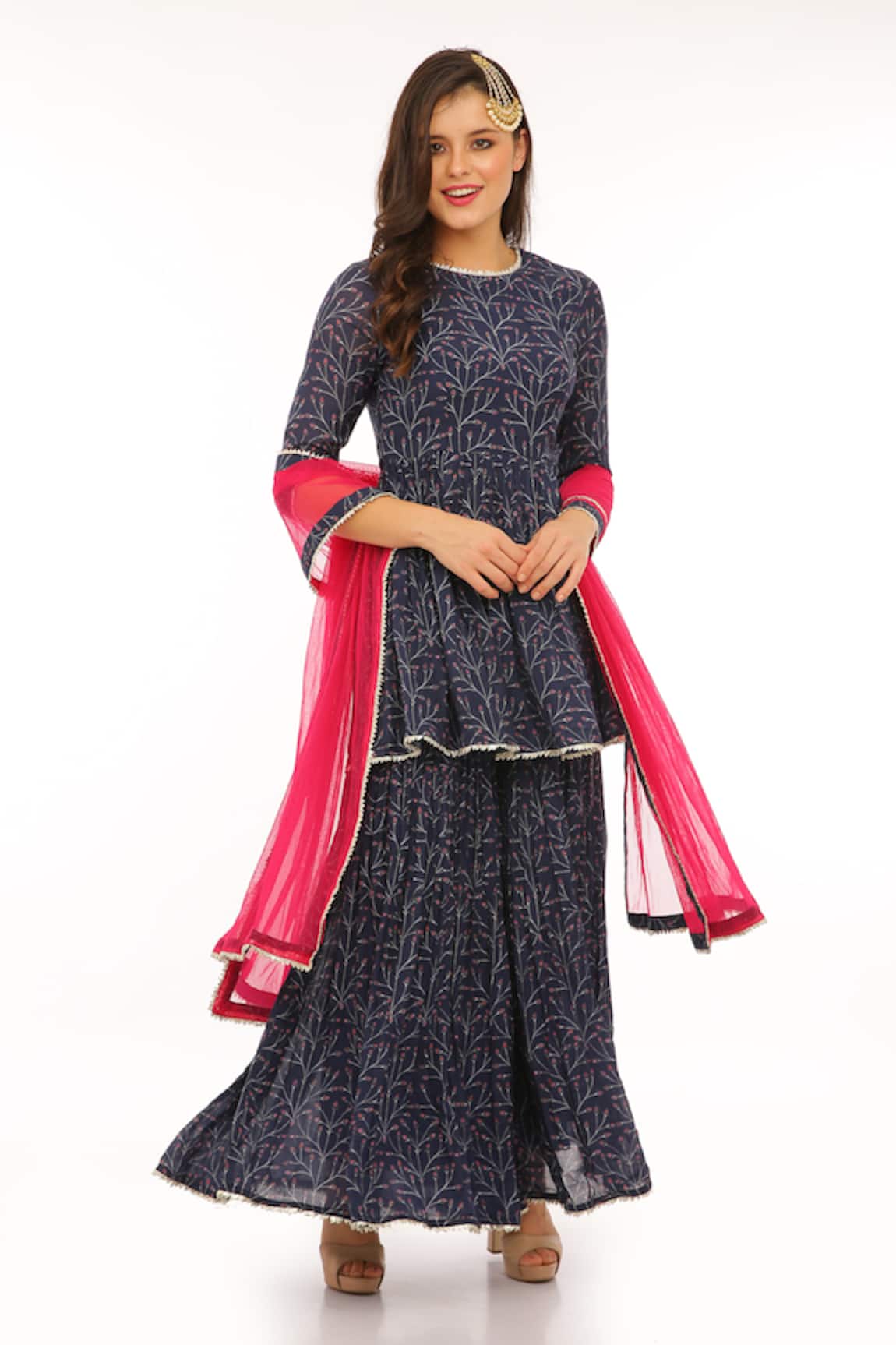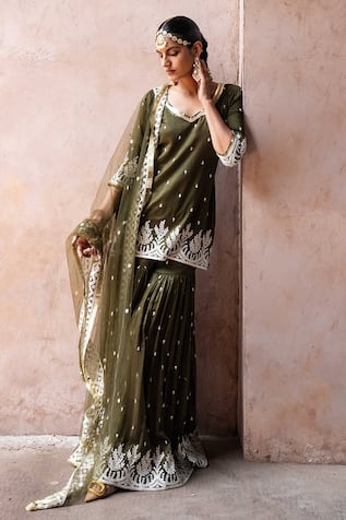 Damask Thread & Mirror Work Kurta Sharara Set