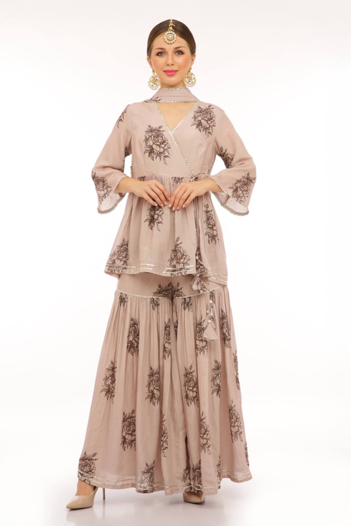 Embroidered Peplum Angrakha Sharara Set