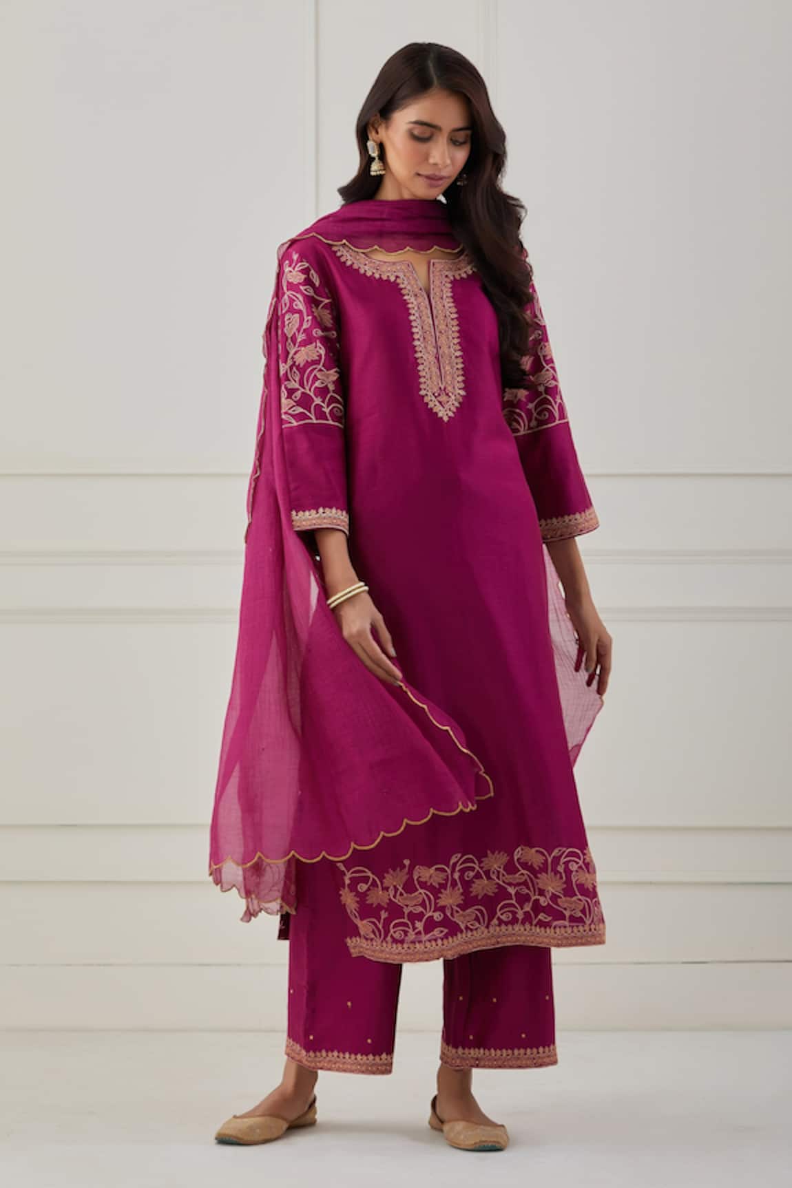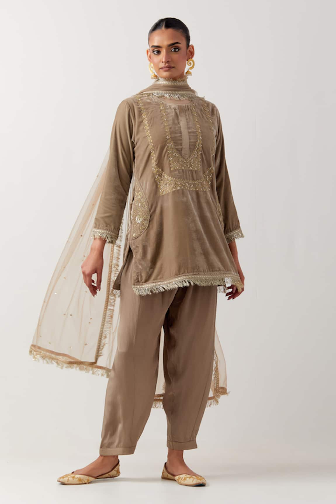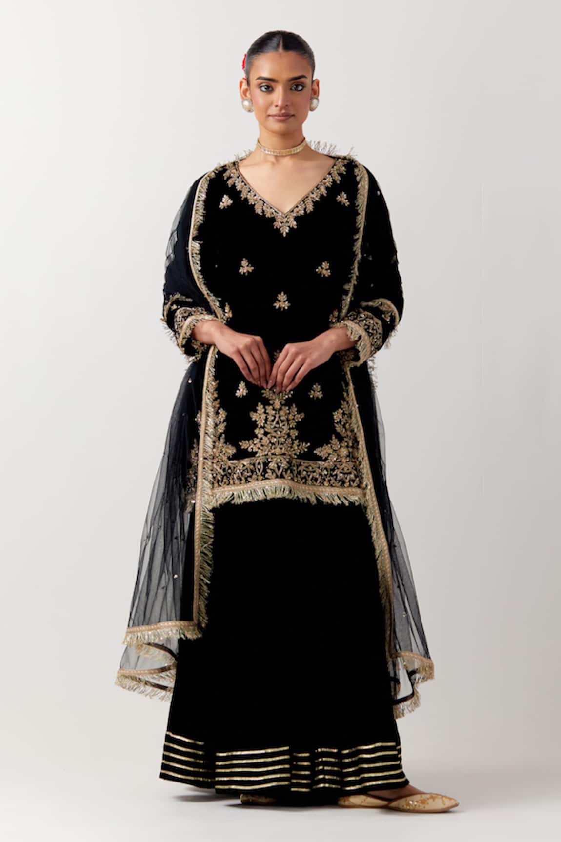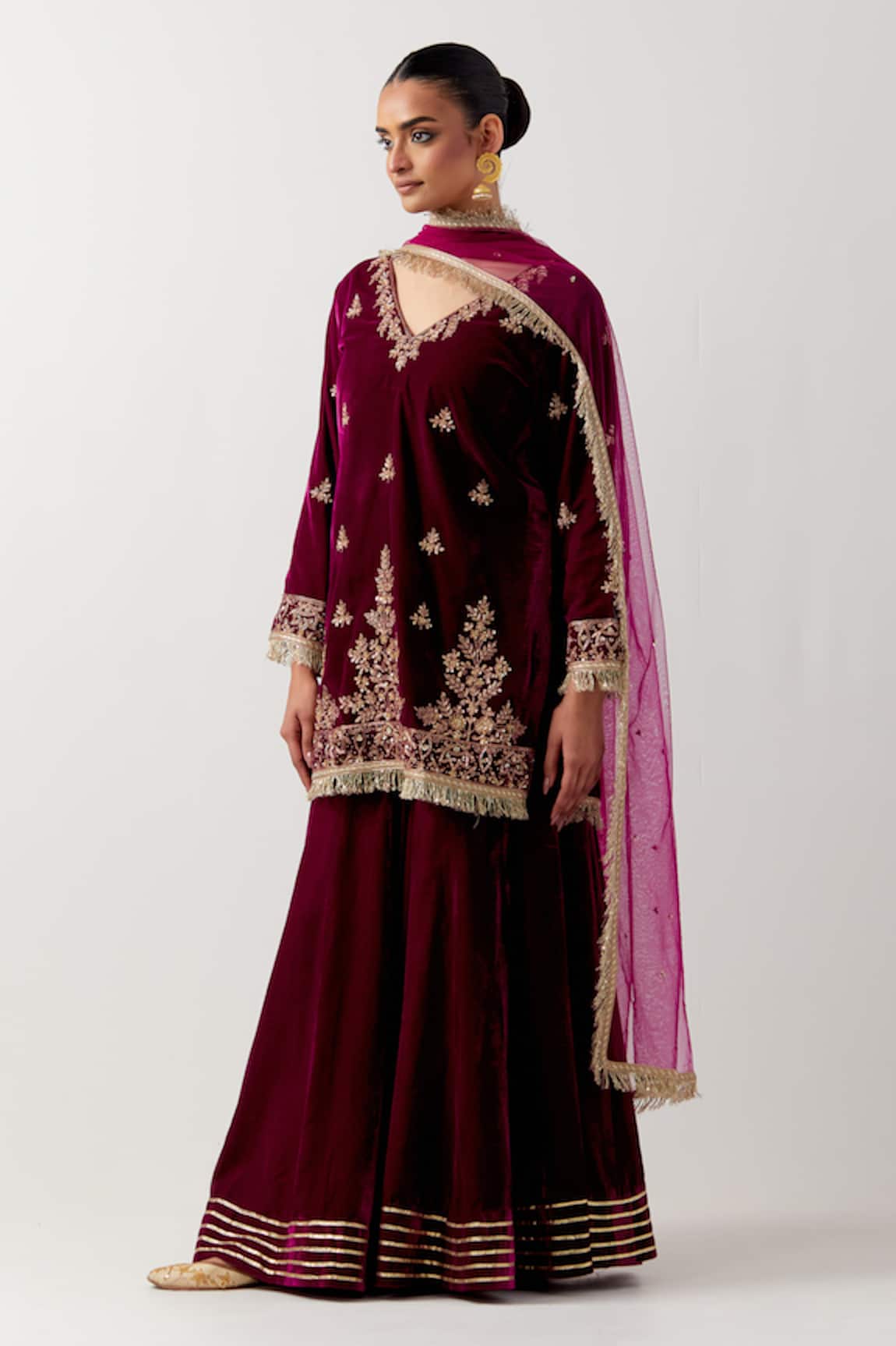 Floral Embroidered Silk Velvet Kurta & Gharara Set
