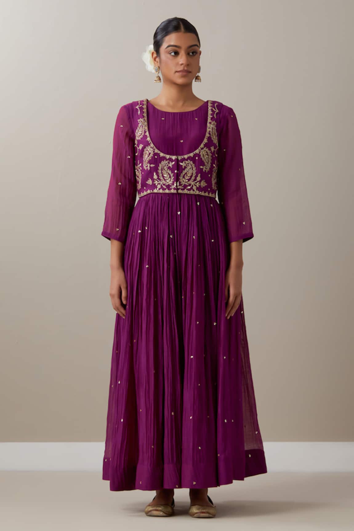 Red Pleated Anarkali & Embroidered Koti Jacket