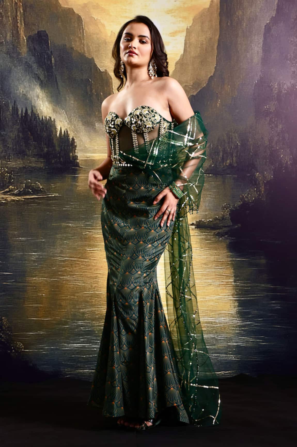 Jahaan Chiffon Printed Bridal Lehenga Set
