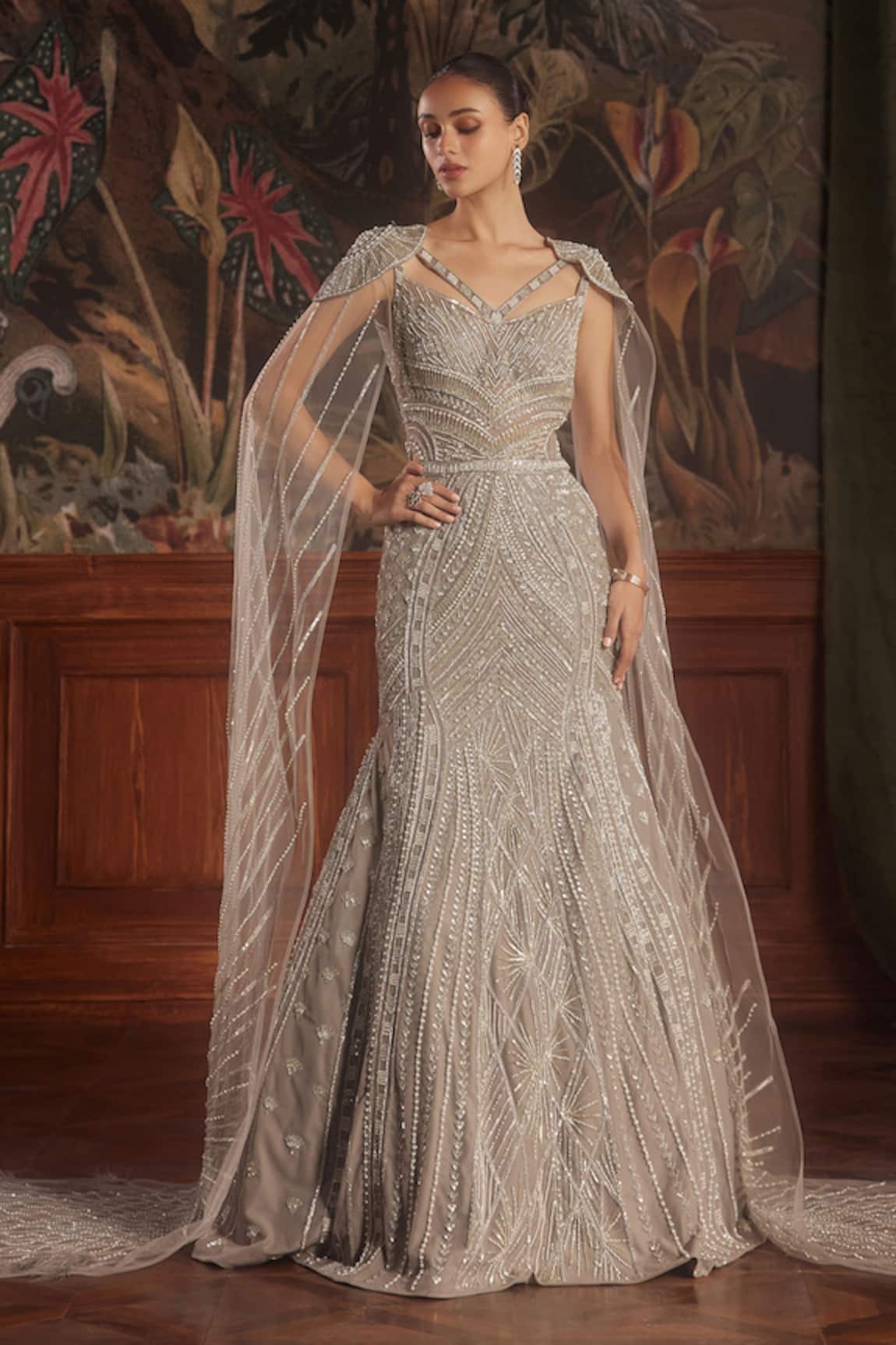 Crater Geometric Embroidered Mermaid Lehenga Cape Set