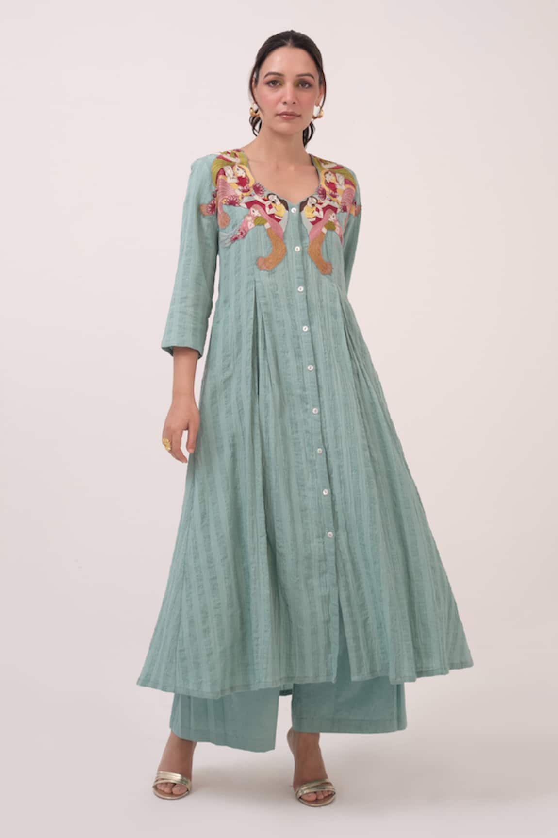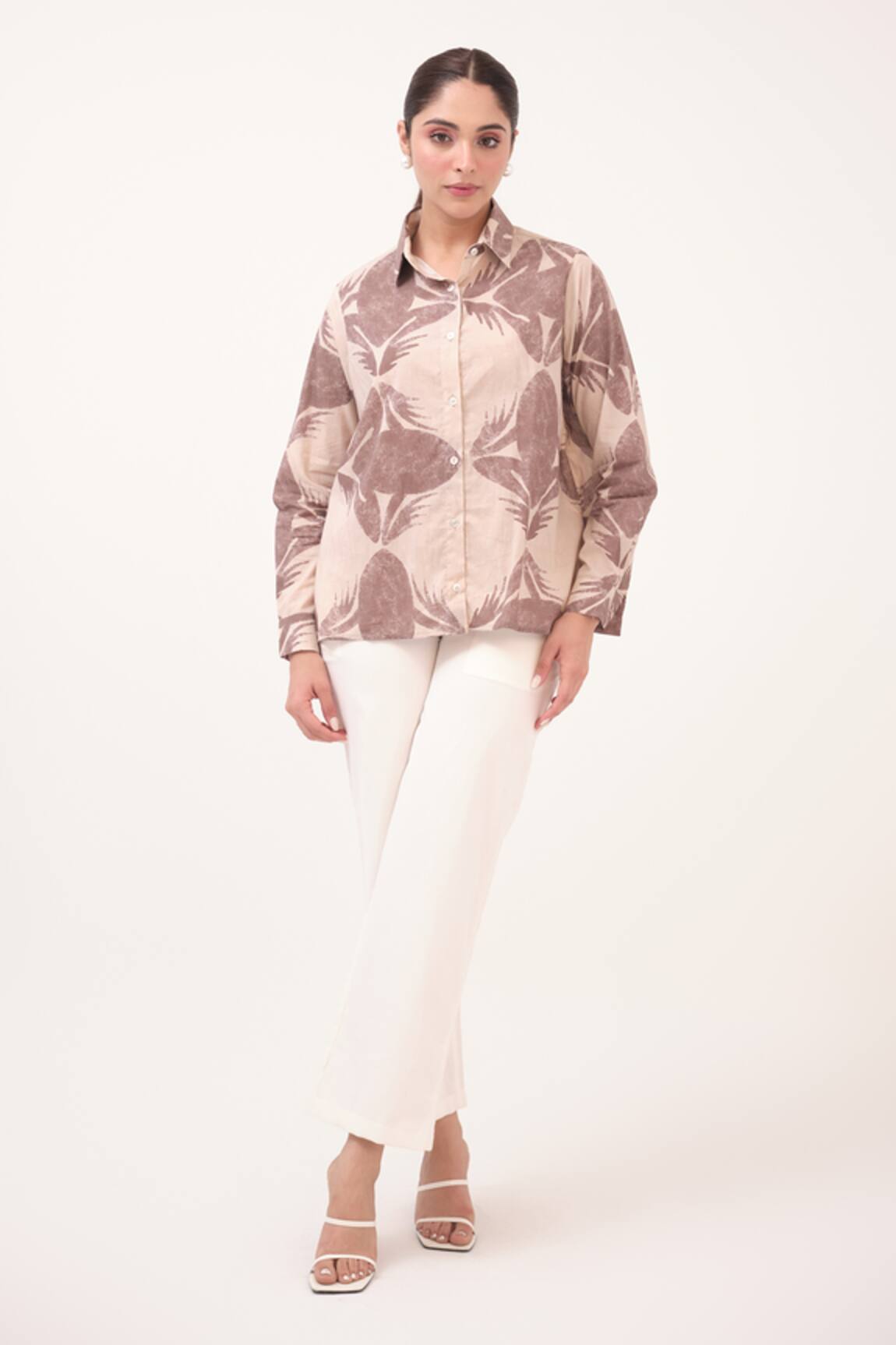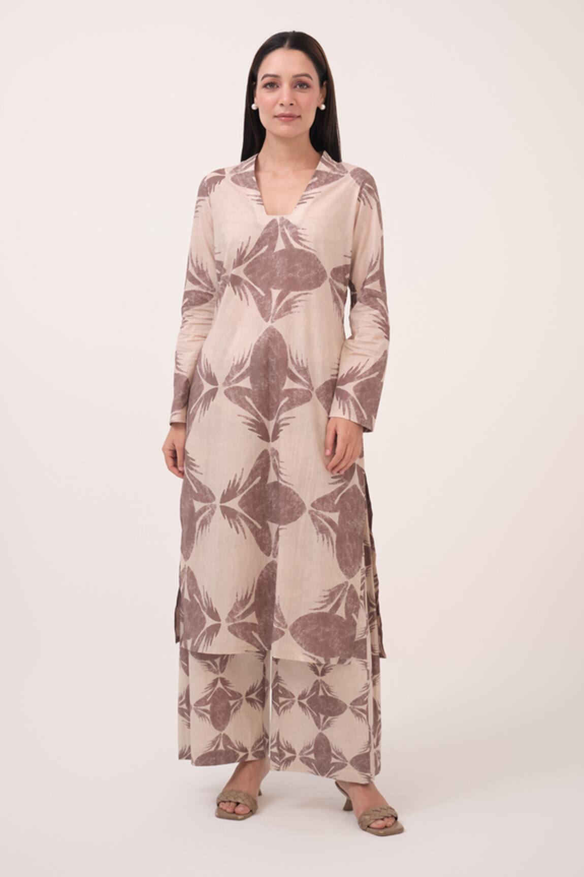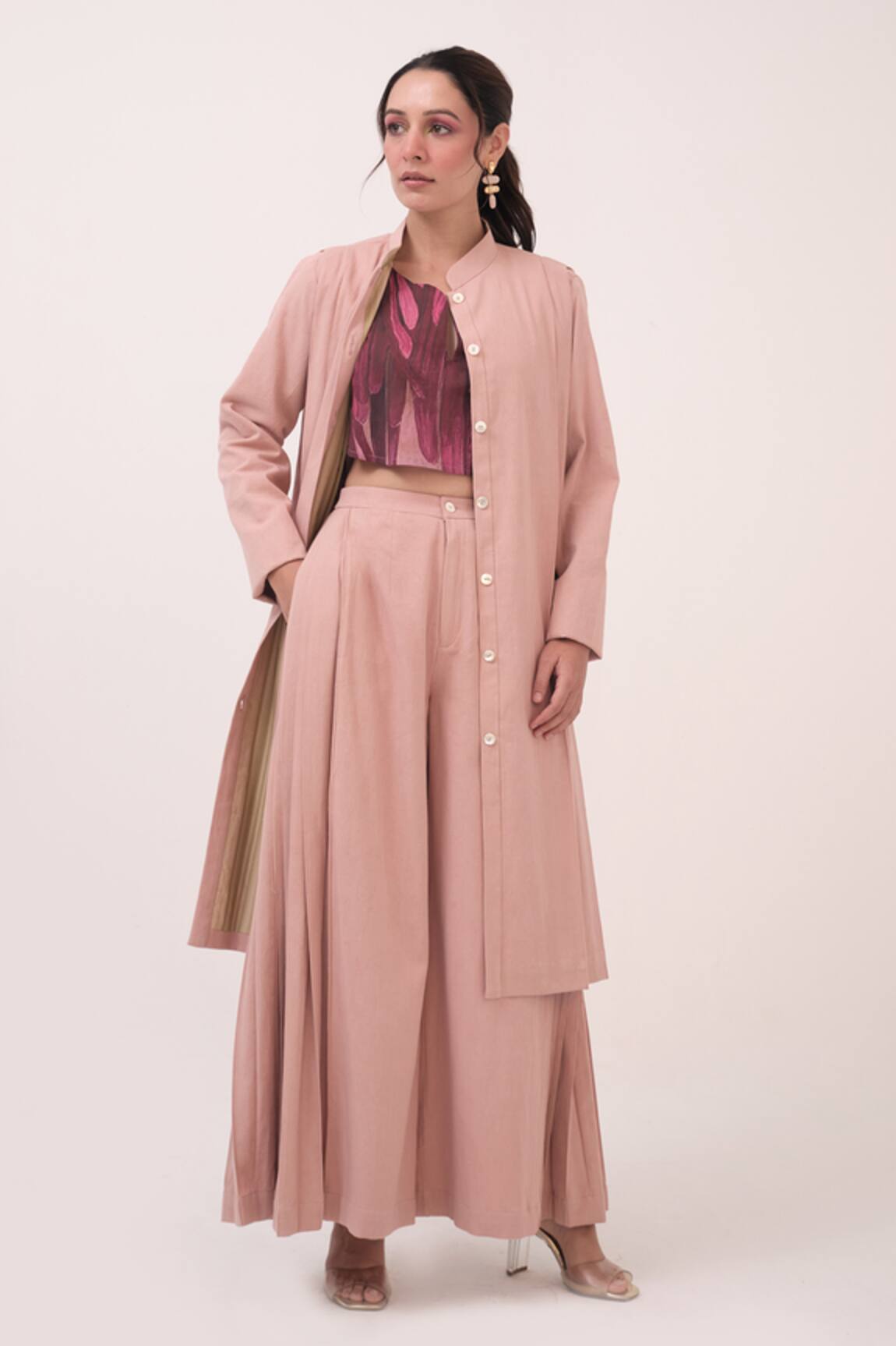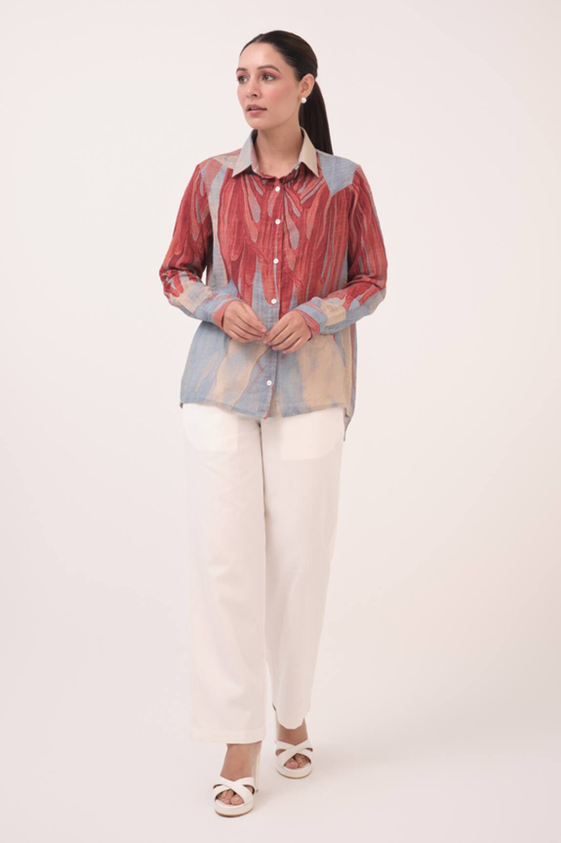 Berry Red Embroidered Top & Ash Brown Pant Set