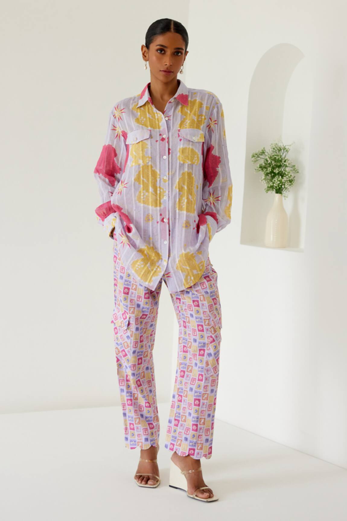 Ruhani Neel Floral Print Kurta Set With Shawl