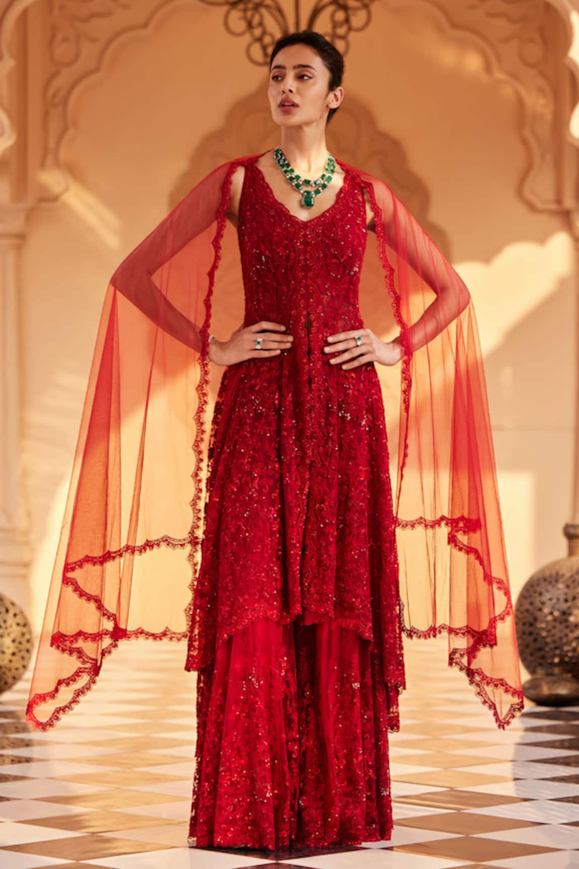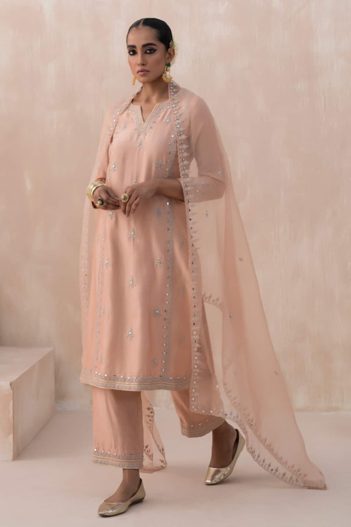 Bead Embellished Kurta Bell Bottom Trouser Set