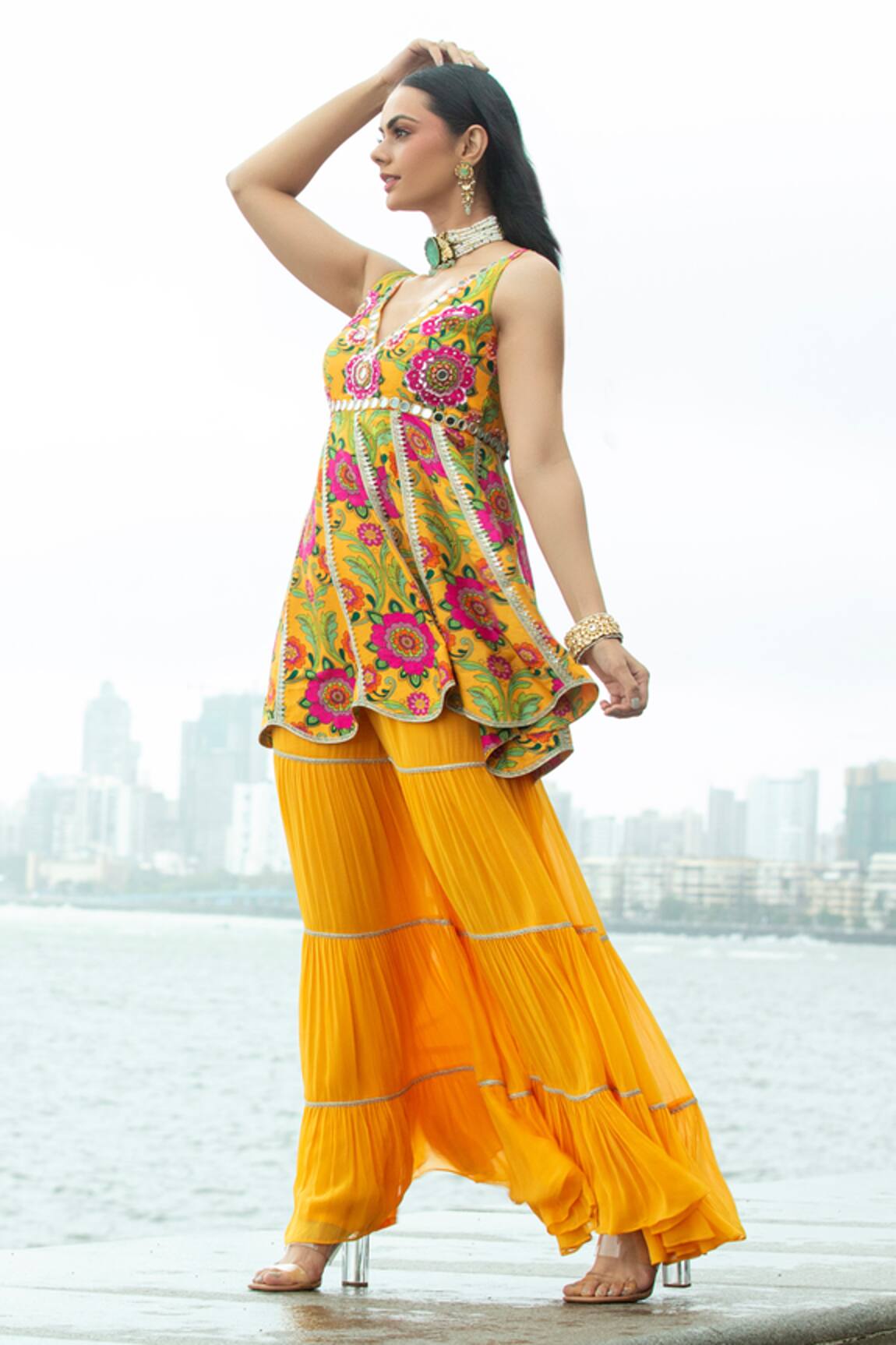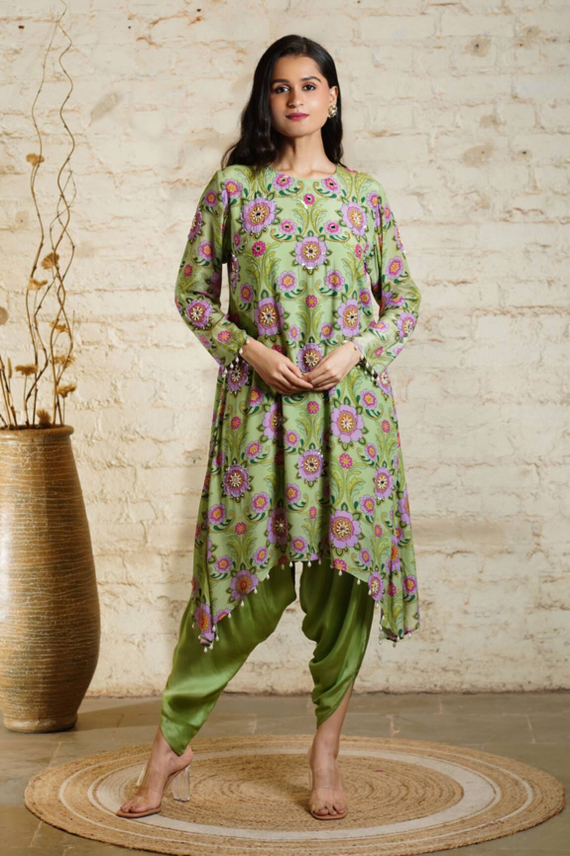 Floral Print Asymmetric Tunic & Dhoti Pant