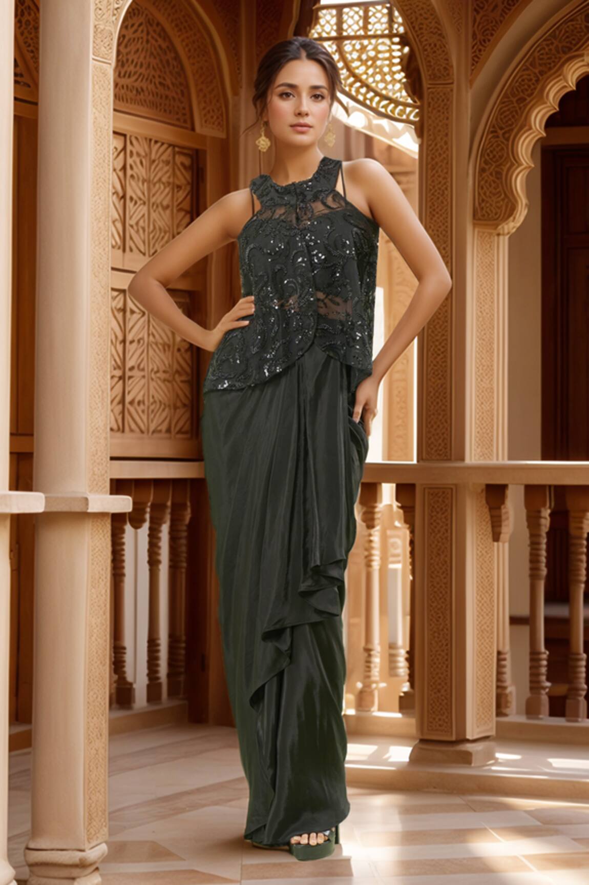 Ruffle Pre-Draped Saree Set With Embroidered Cape