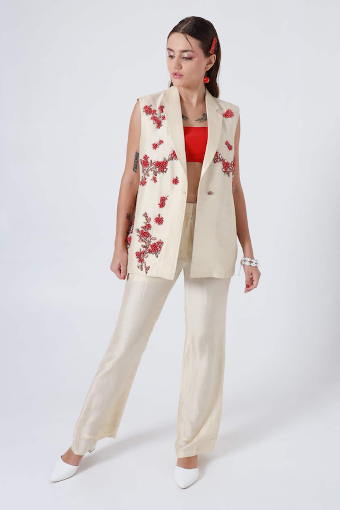 Shagufta Floral Bead Embroidered Jacket & Pant Set