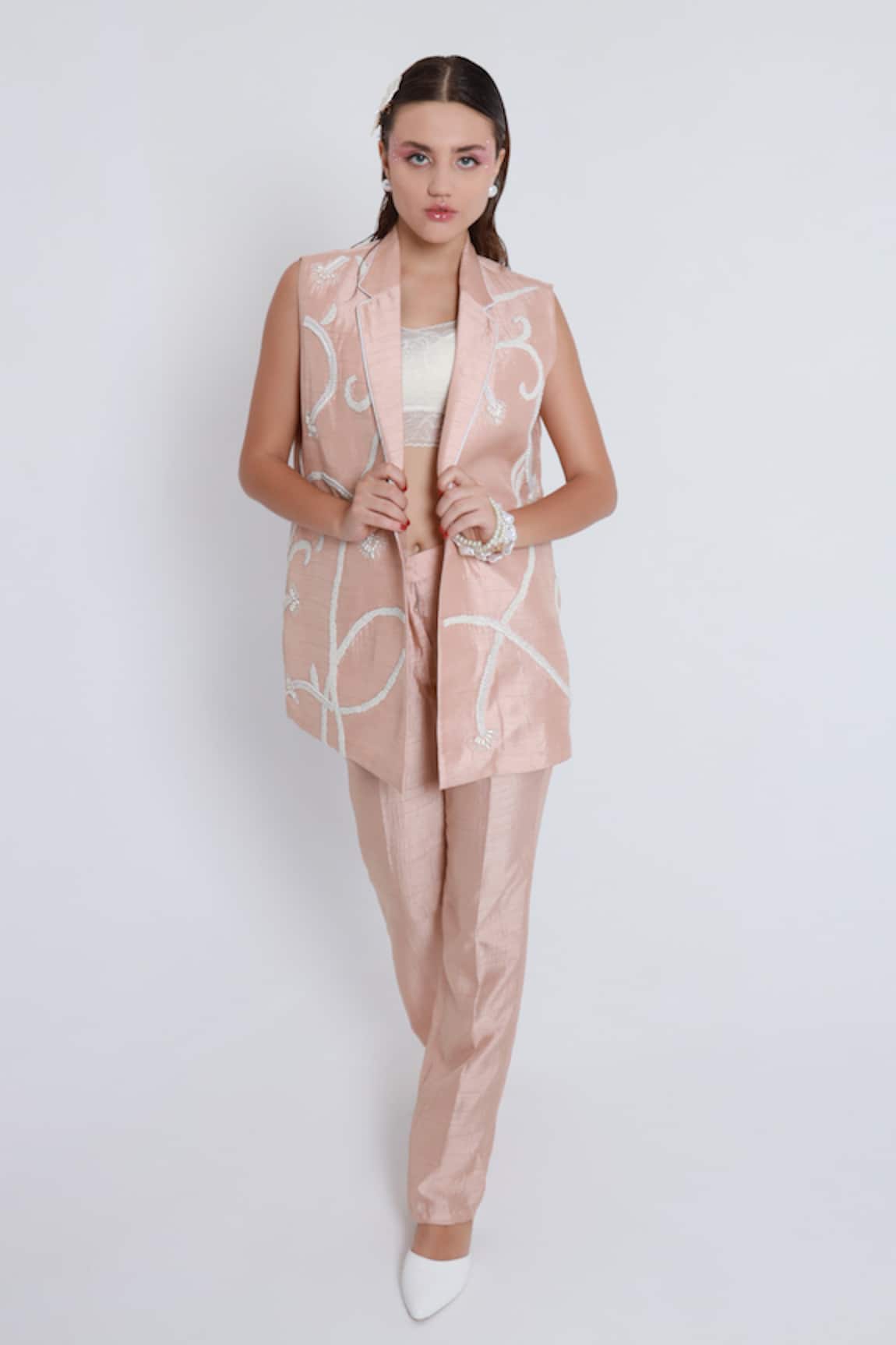 Pink Silk Pearl Embroidered Jacket & Pant Set
