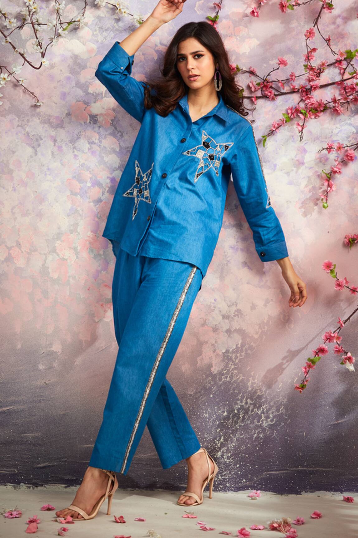Hand Embroidered Denim Shirt & Pant Set