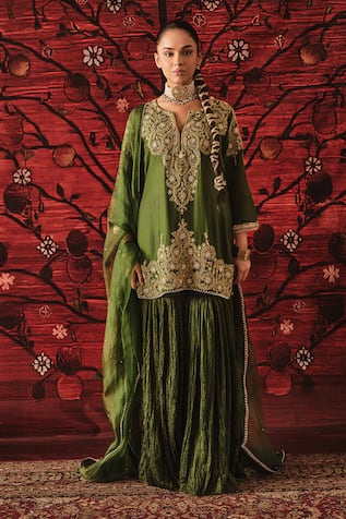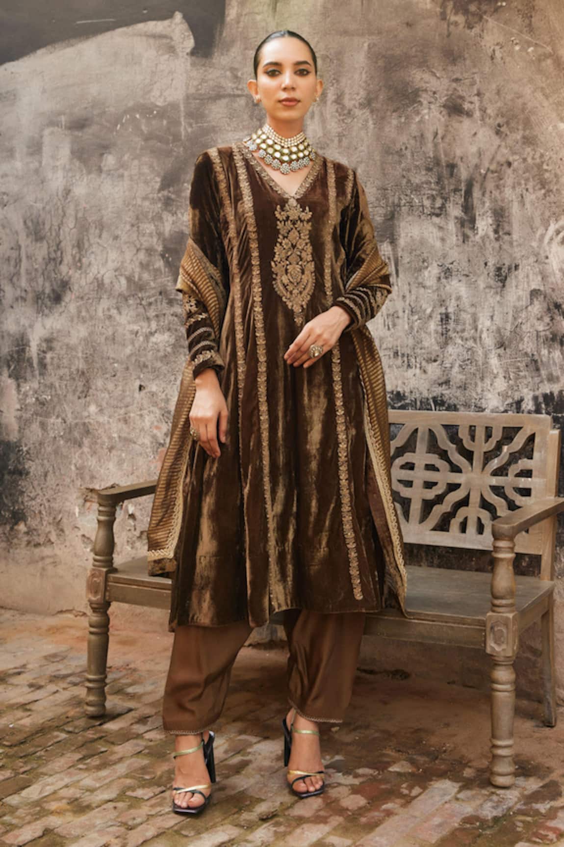 Bandhani Embroidered Kaftan Kurta & Pant Set
