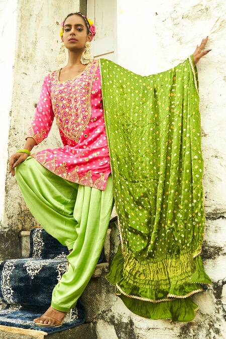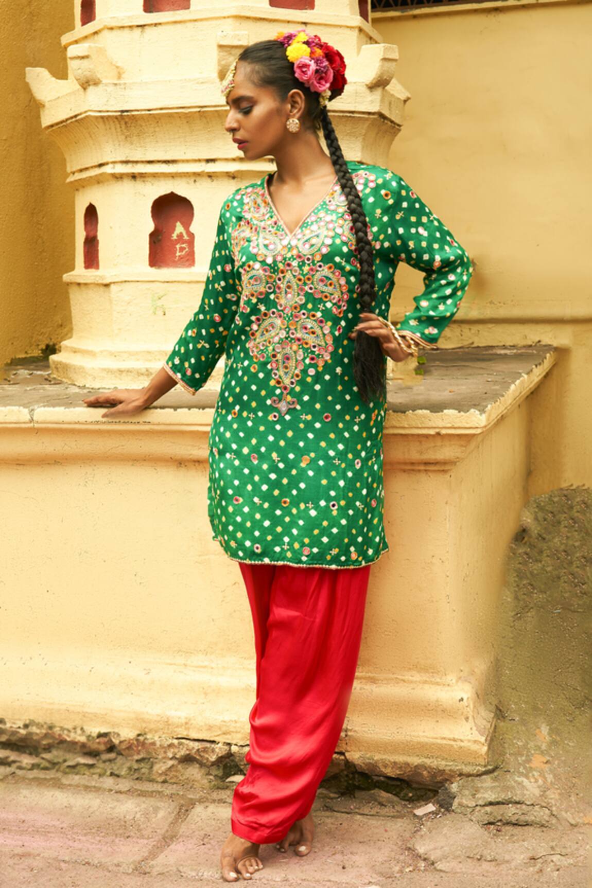 Infusing modern perspectives into Indian heritage clothing, adorned with mirror work, to craft contemporary, luxurious renditions.