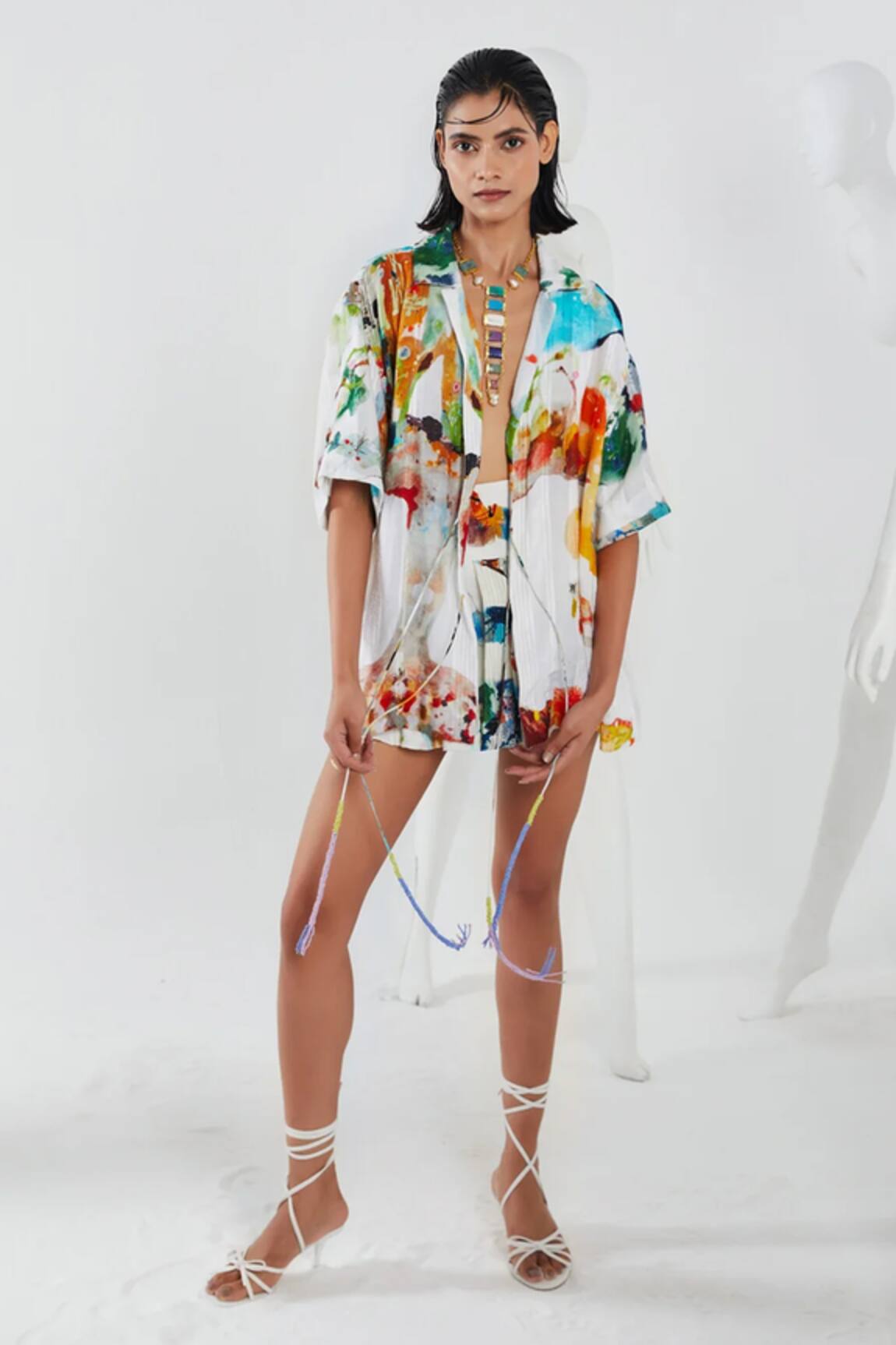 Blue Cotton Fringe Dobby Top & Shorts Set