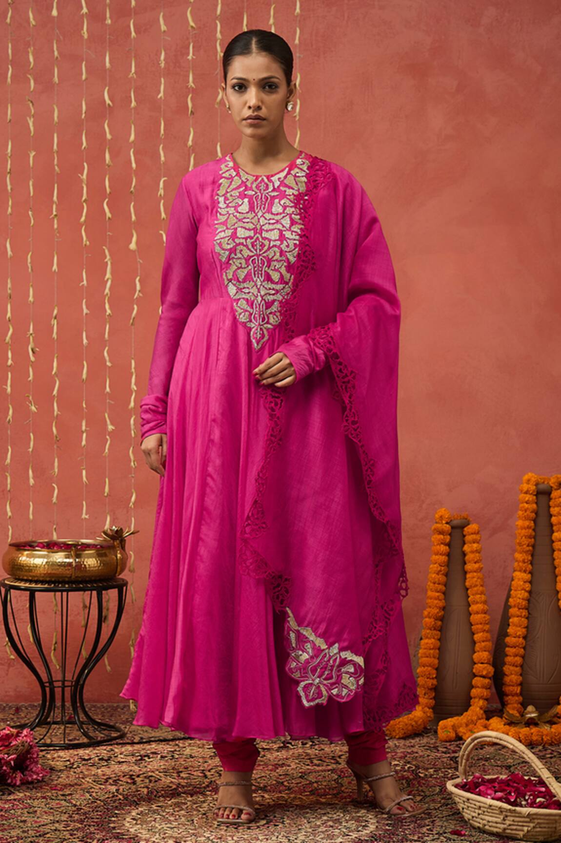 Chanderi Gota Embroidered Kurta Set