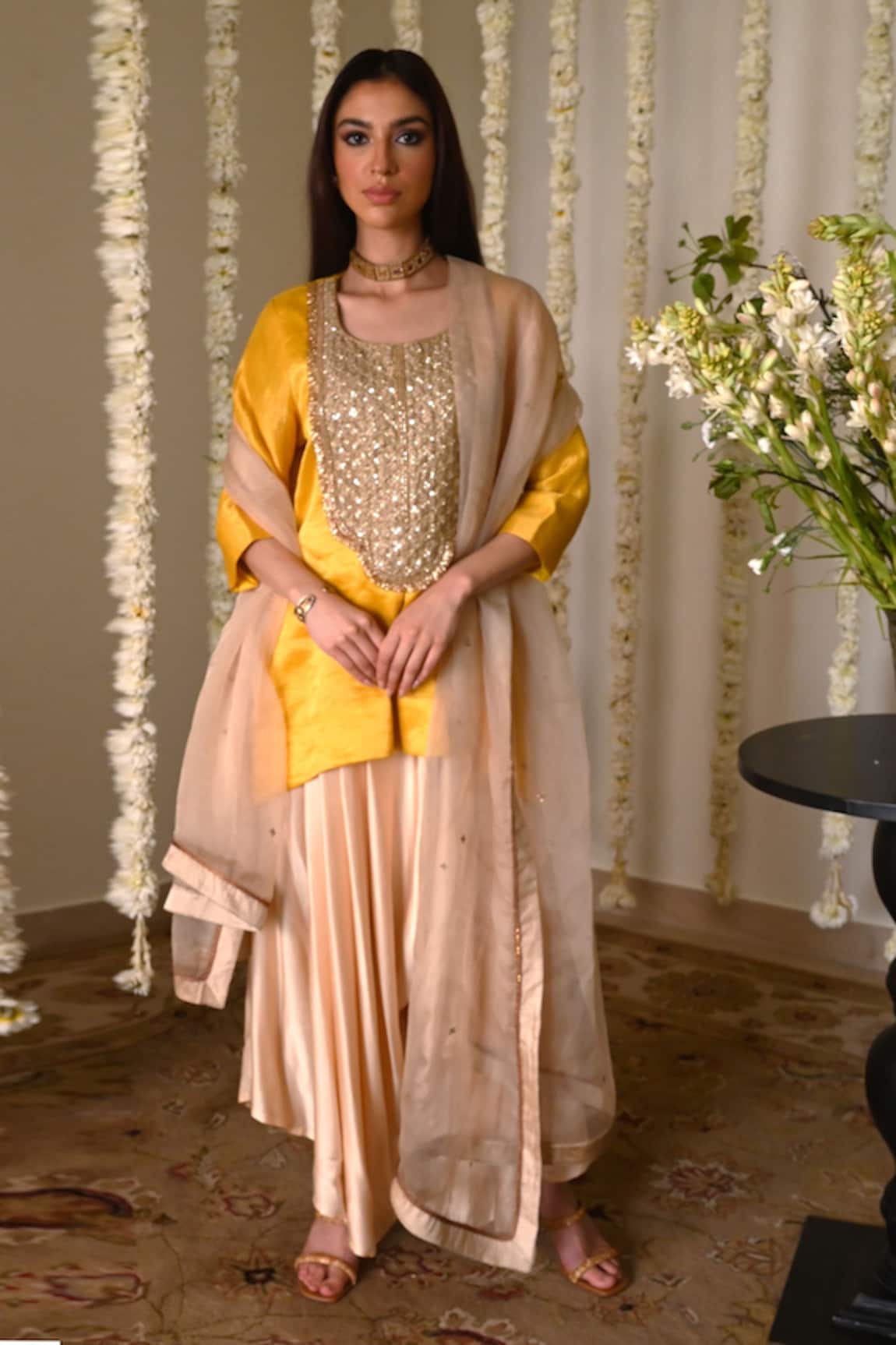 Radiating modern charm while staying rooted in timeless traditions, the label seamlessly blends traditional textiles and classic embroideries.