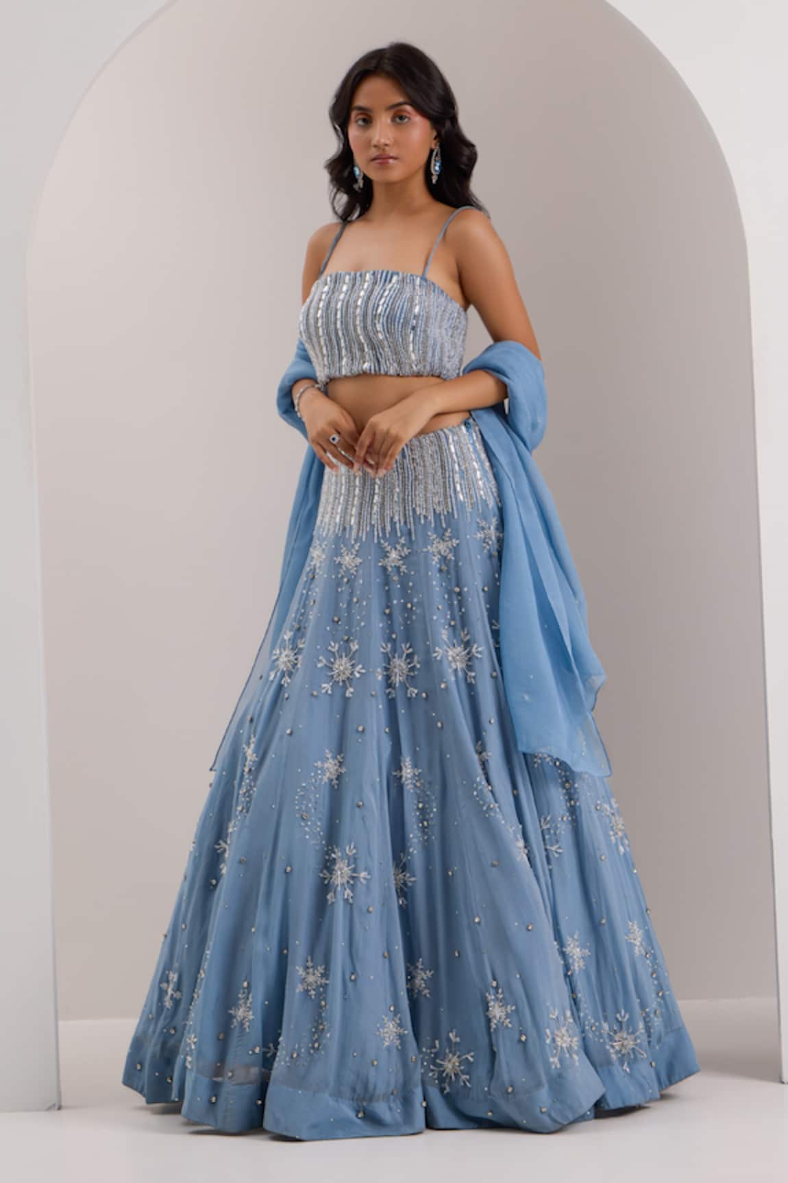 Riona Crystal Snowflake Embellished Lehenga Set