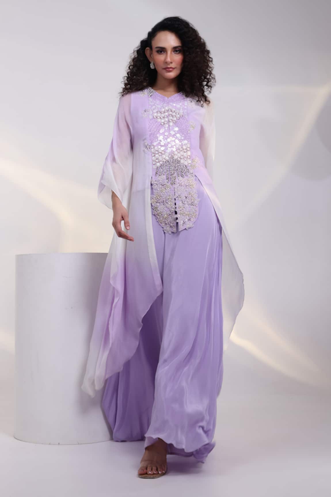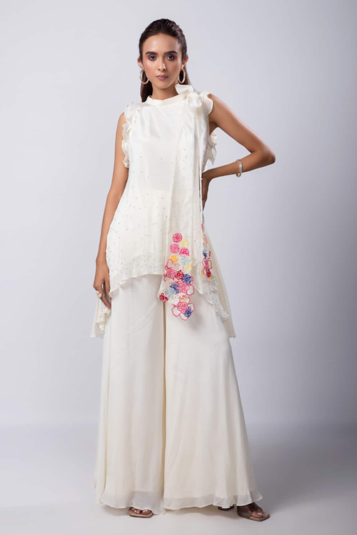 Floral Applique Overlap Panel Kurta With Flared Pant