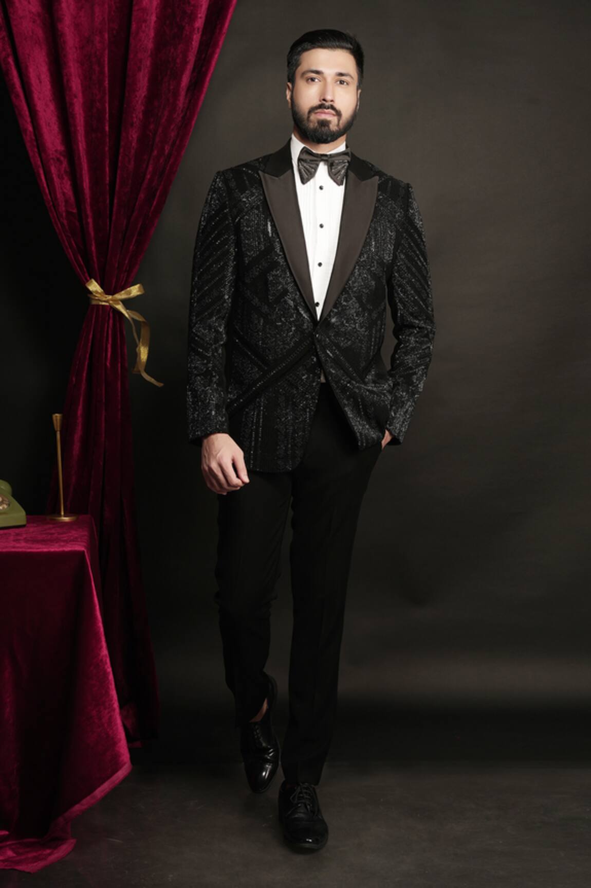 Velvet Wave Embellished Tuxedo Set