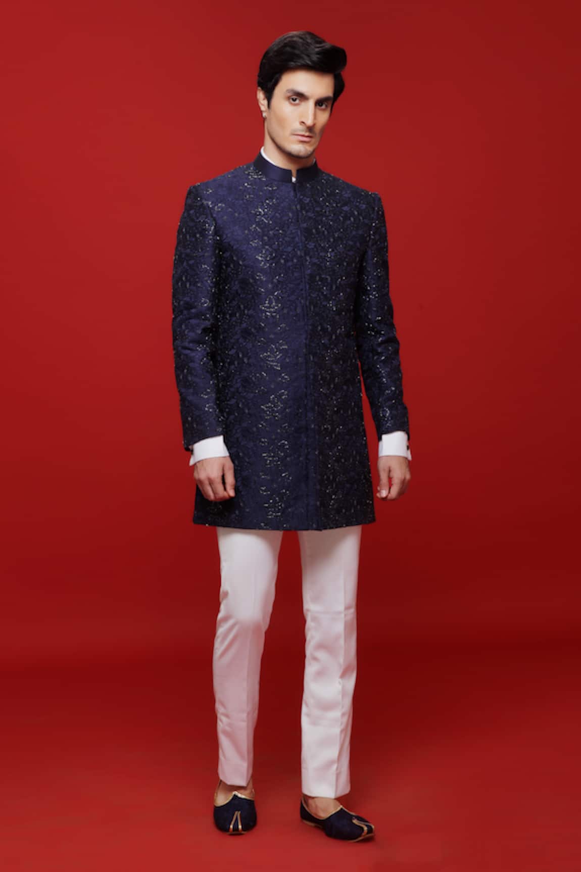 Velvet Zari Embroidered Sherwani Pant Set