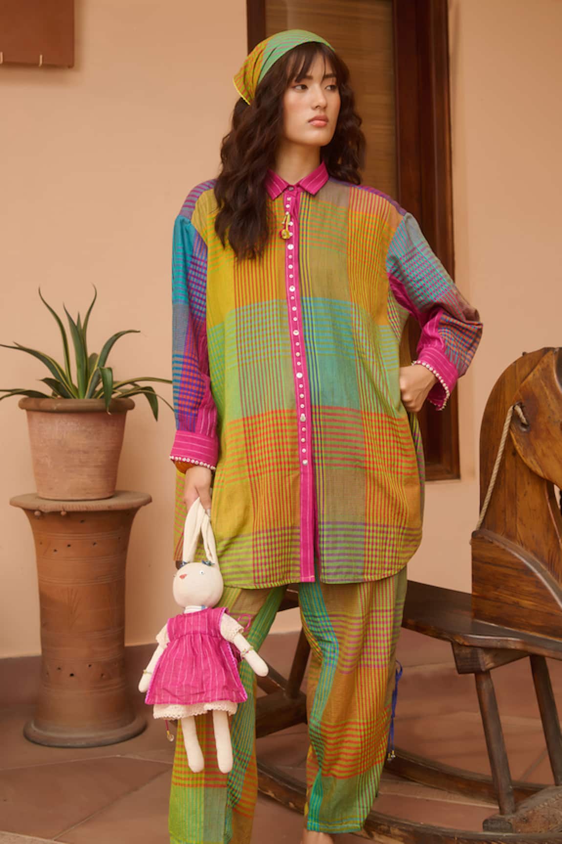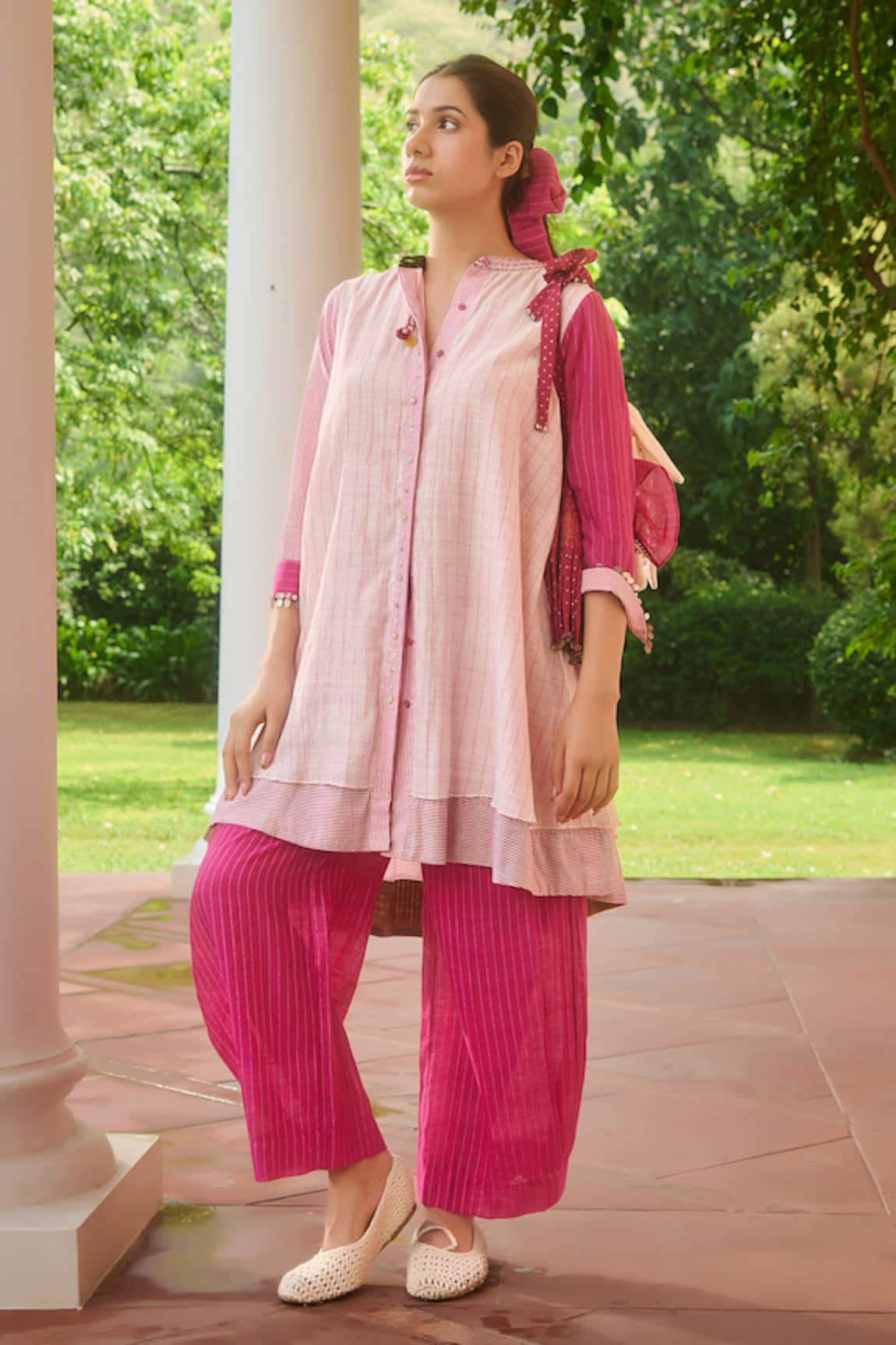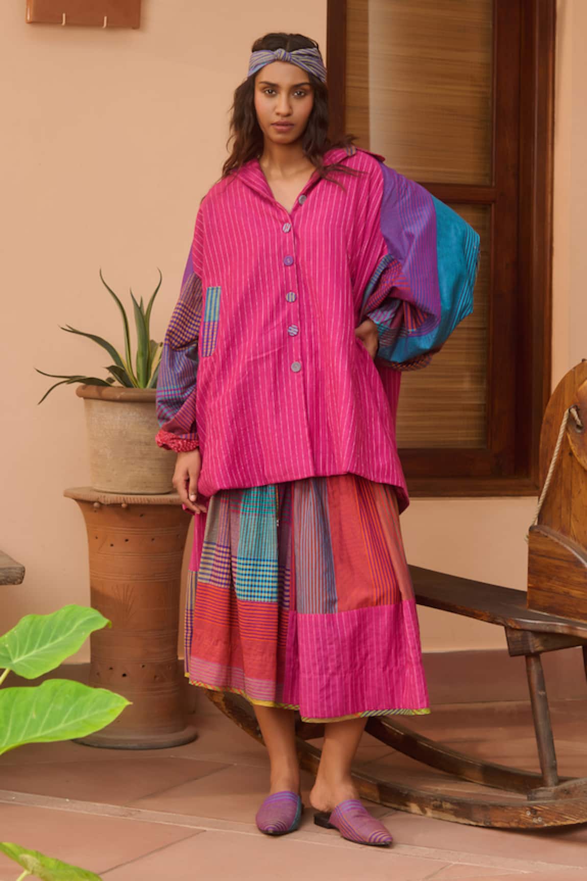 Delta Stripe Patchwork Woven Shirt & Skirt