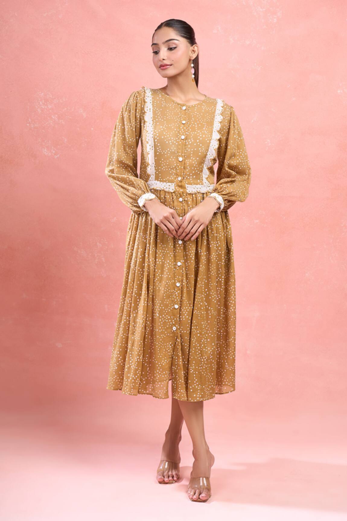Taro Cream Cotton Lurex Anarkali & Pant Set