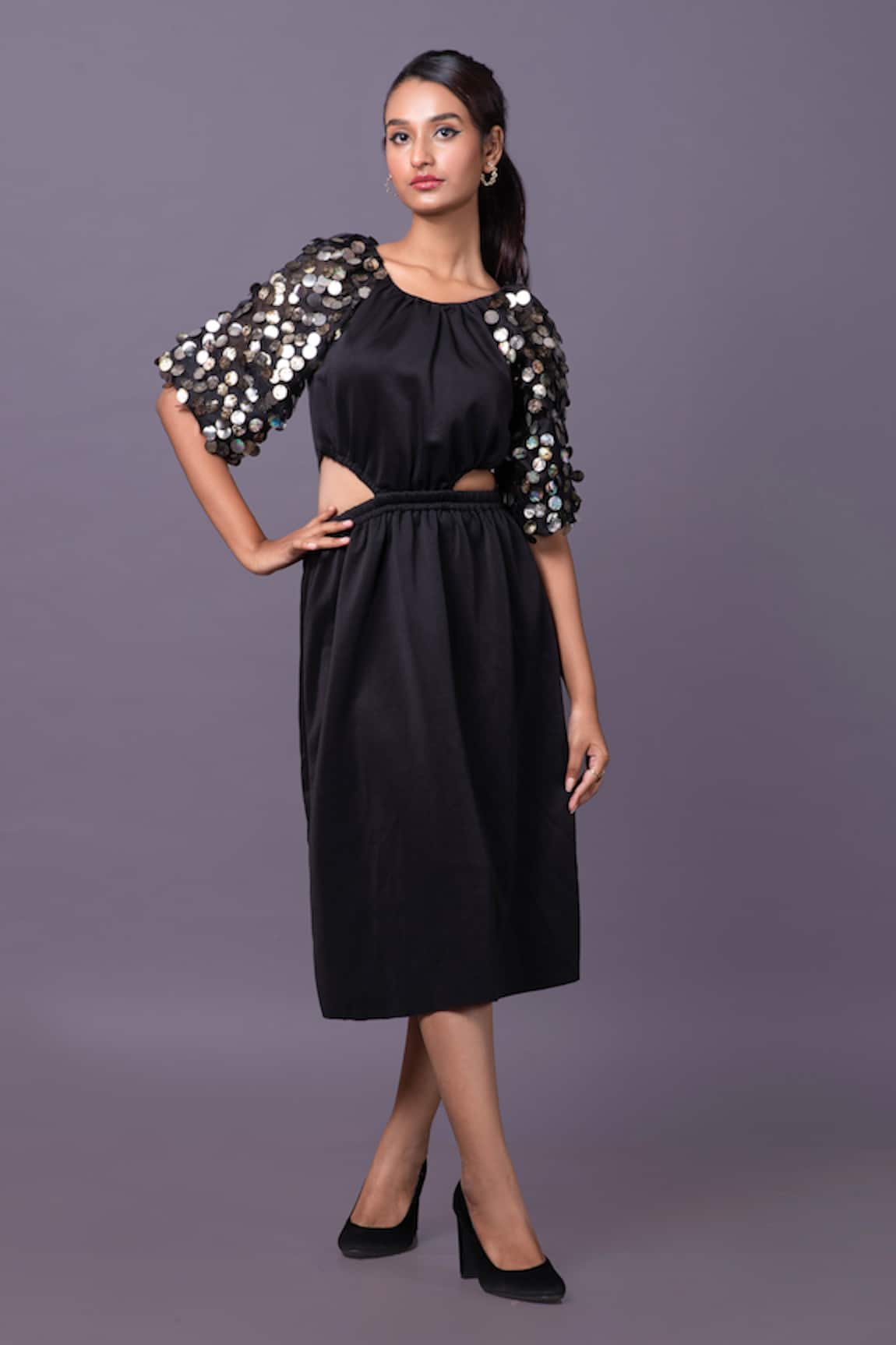 Sequin Embroidered Cut Out Dress