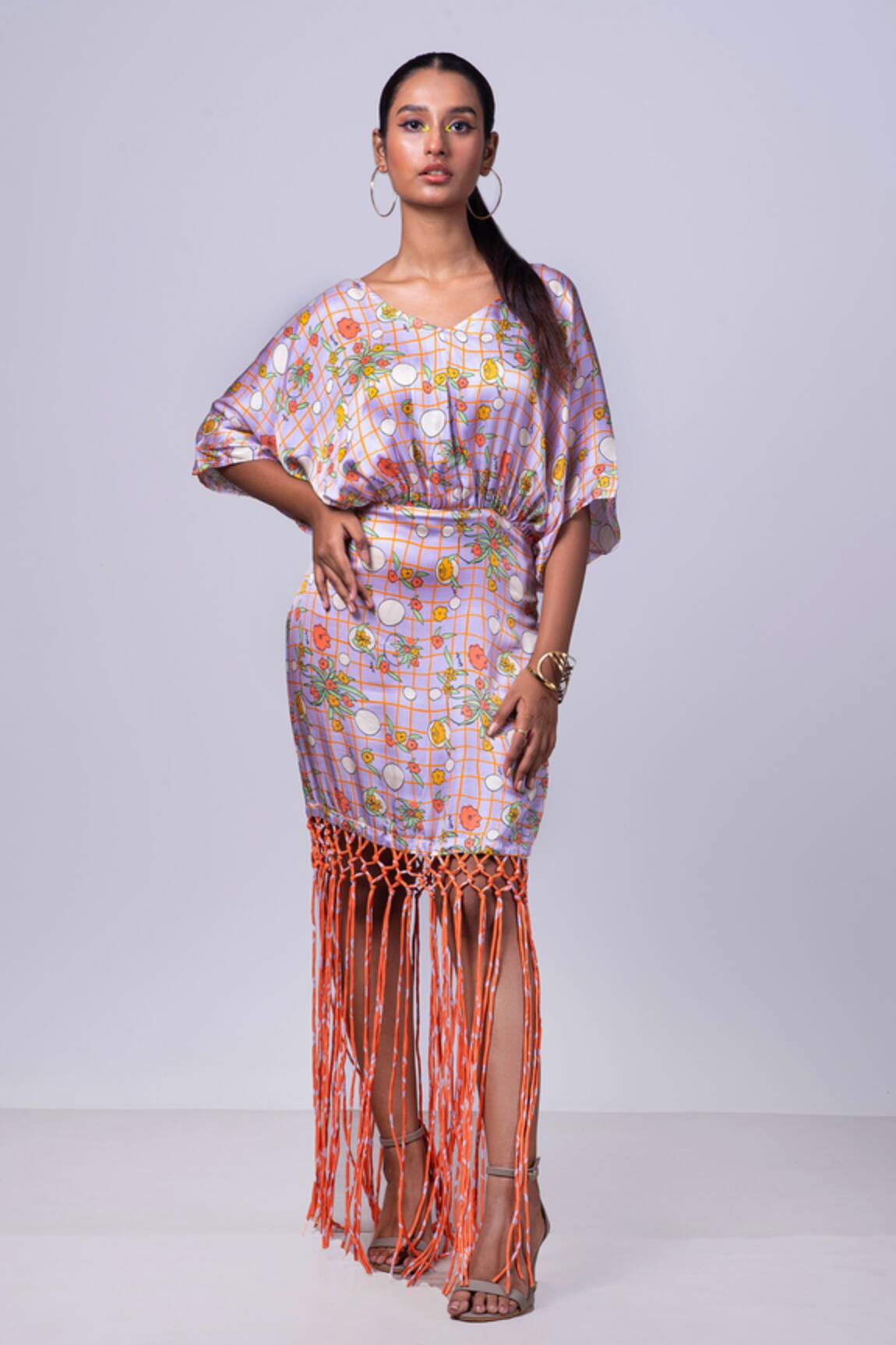 Tassel Embroidered Sleeveless Top With Draped Skirt