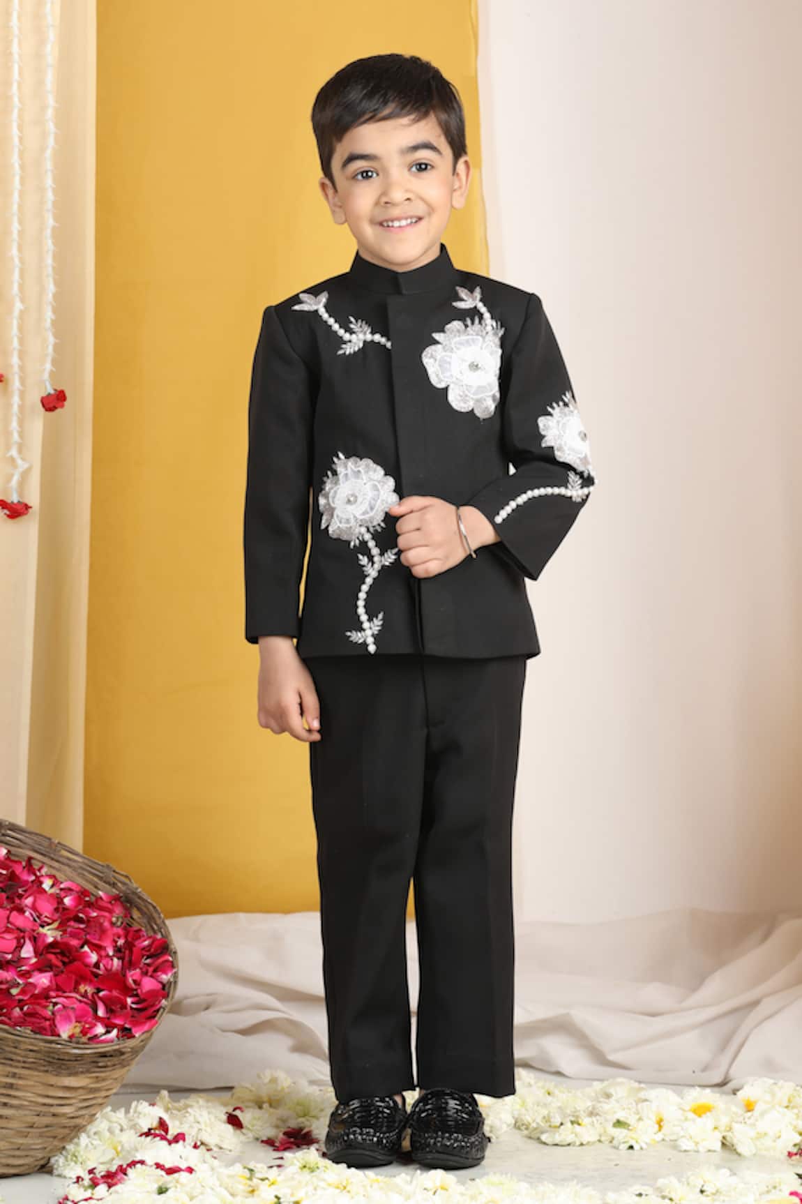 Black Floral Applique Sherwani Set