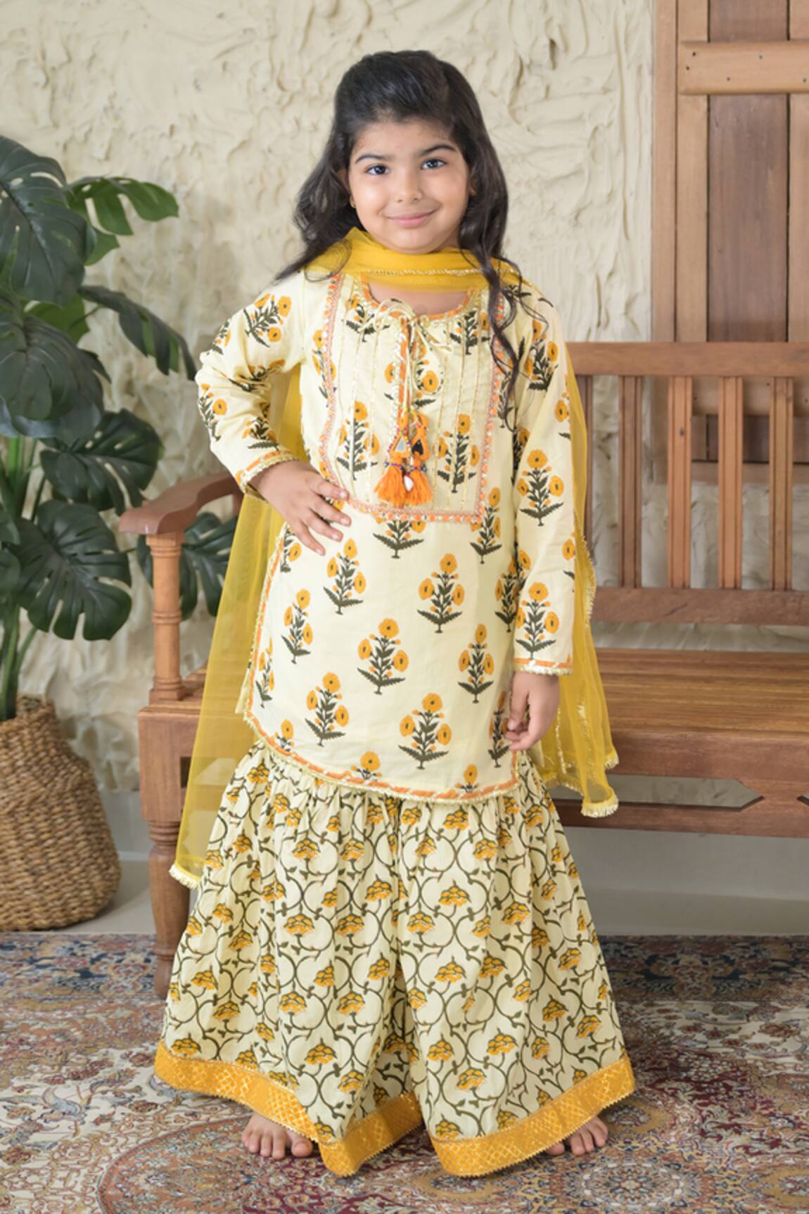 The Plum Bum Floral Hand Block Print Kurta Sharara Set
