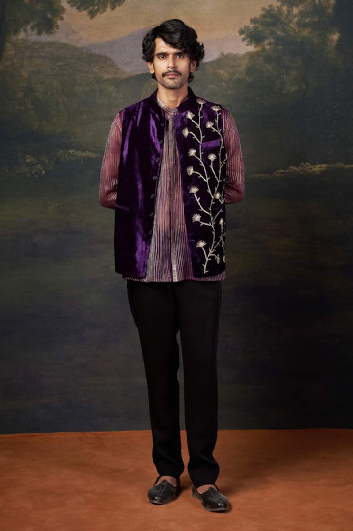 Hand-Embroidered Velvet Purple Kalidar Anarkali Set