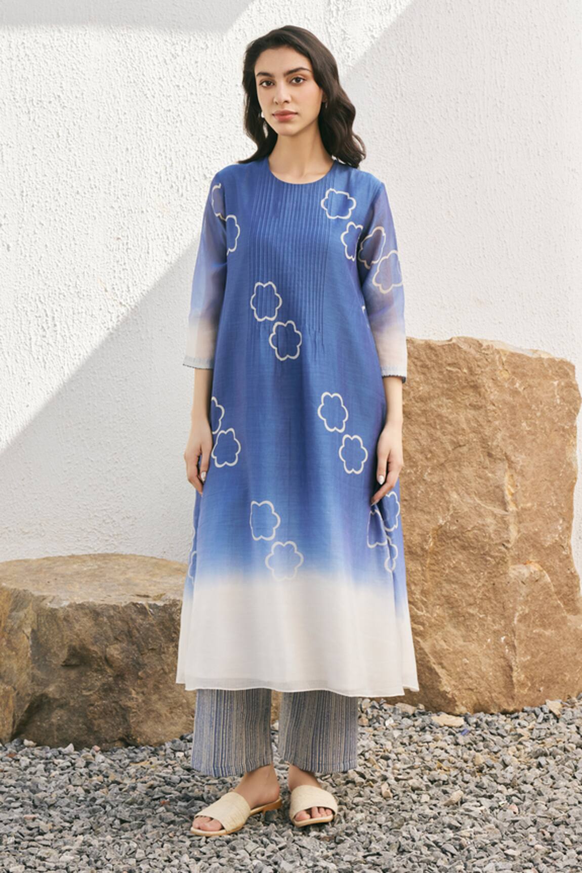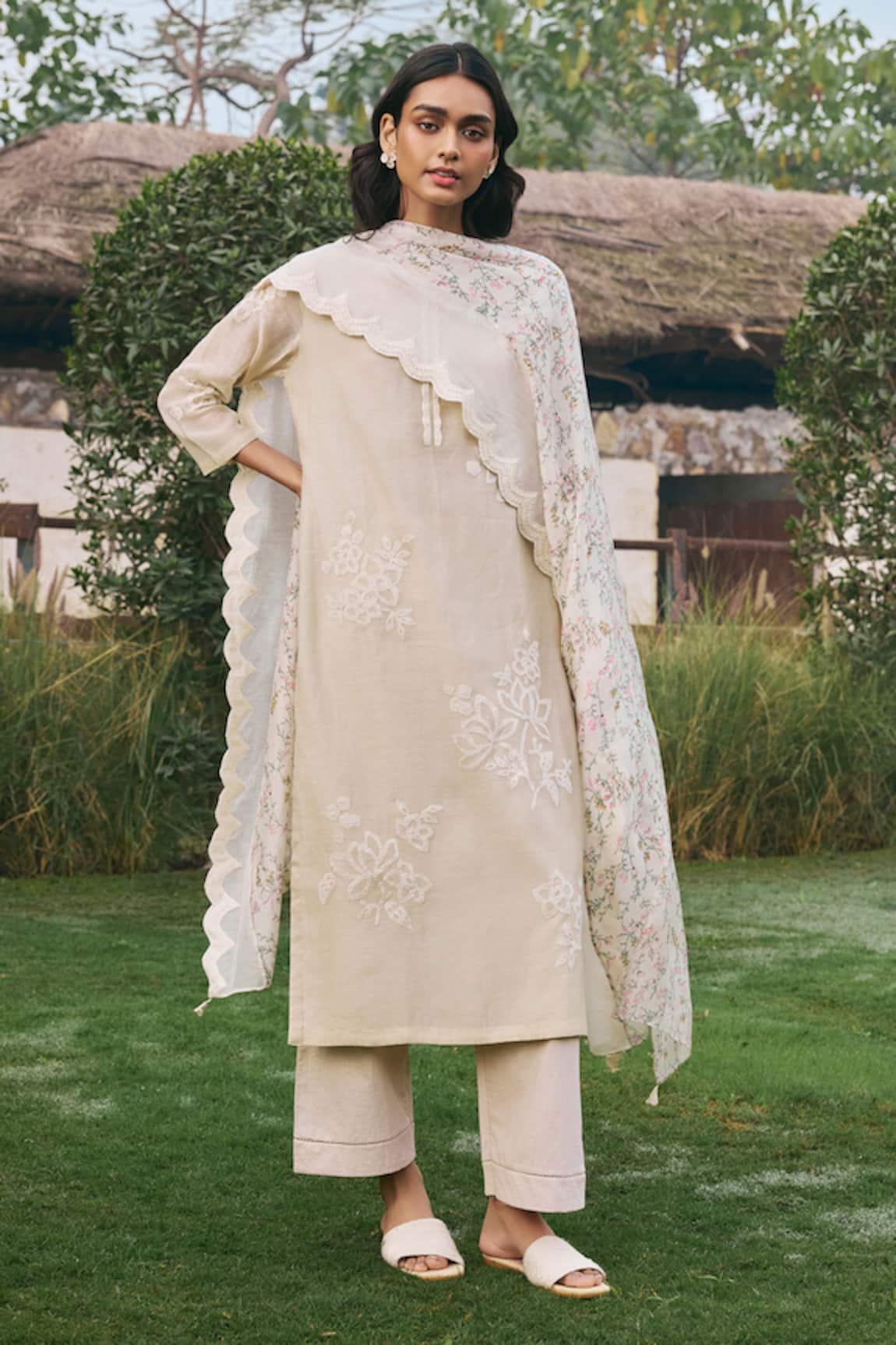 Daffodil Floral Applique Saree With Unstitched Blouse Piece
