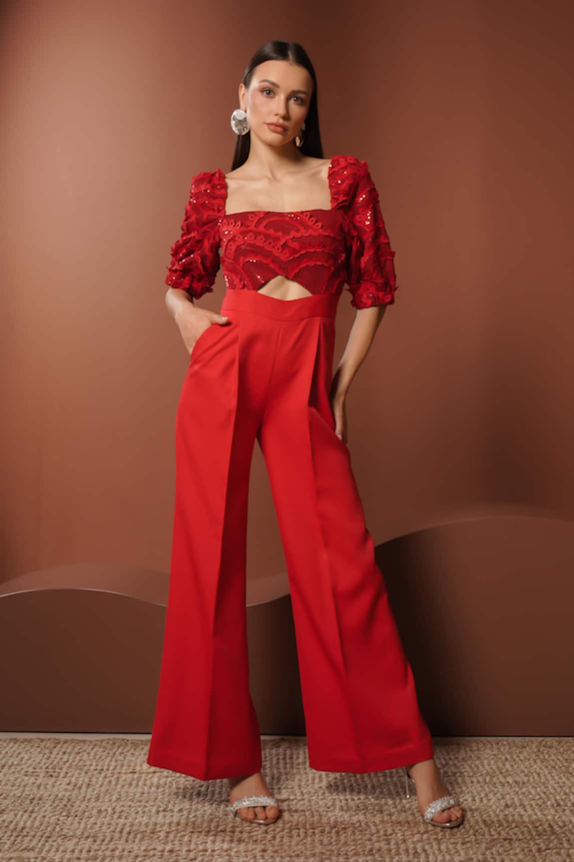 AMINA Criss Cross Geometric Applique Jumpsuit