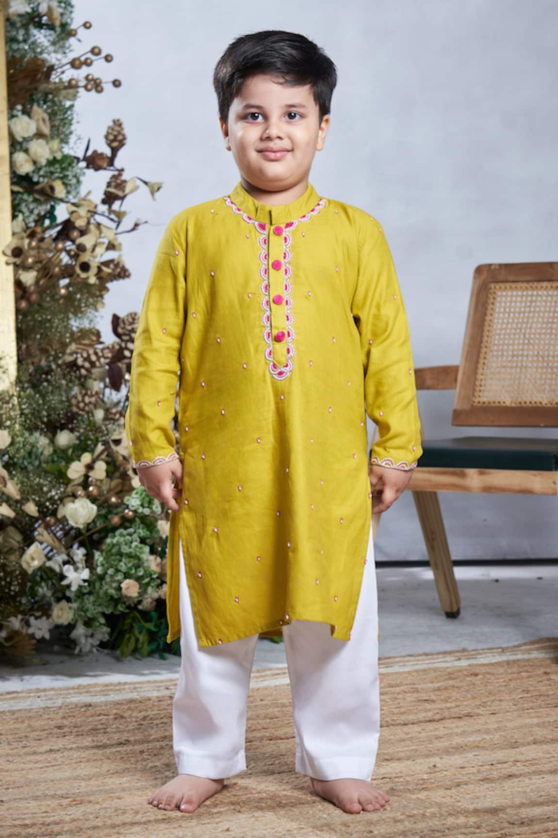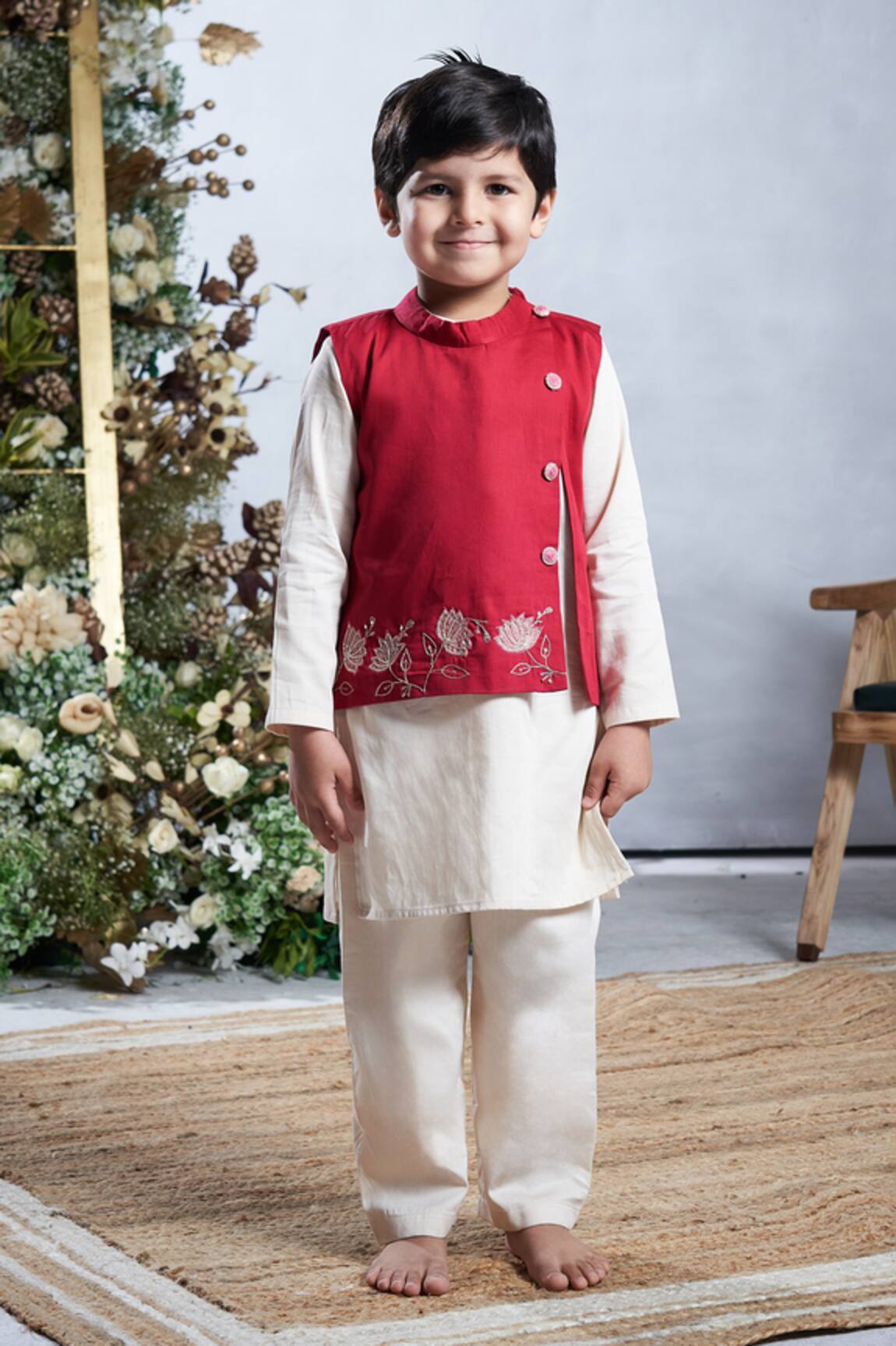 Linen Krishna Embroidered Kurta & Dhoti Pant Set