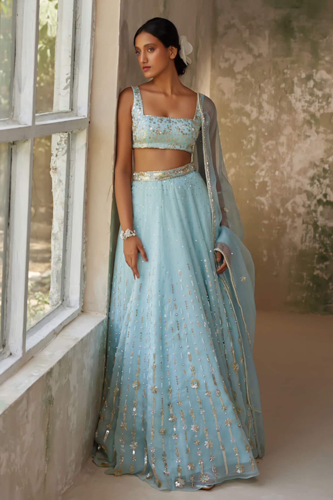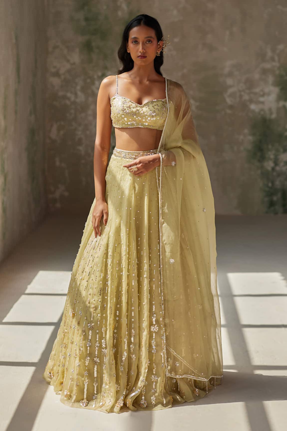 Sequin Cluster Embroidered Lehenga Set With Embellished Blouse