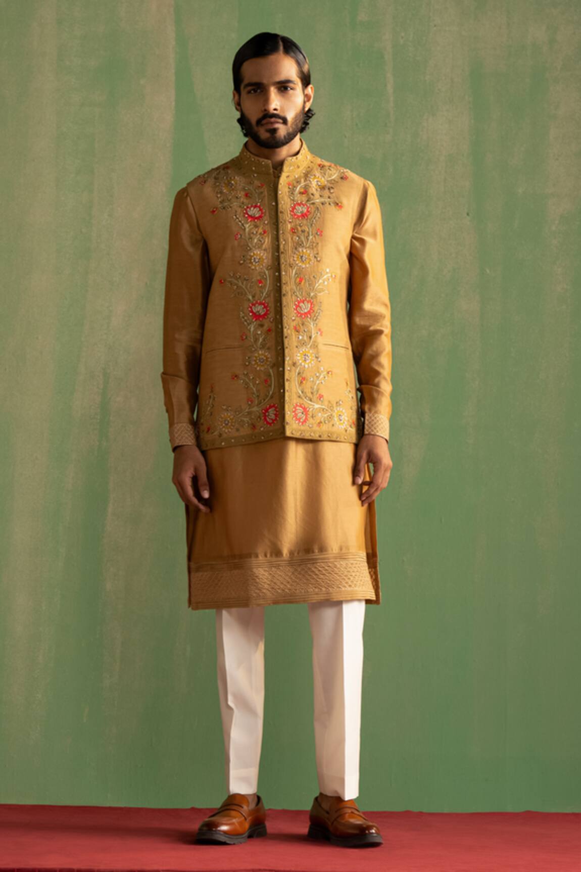 Mughal Garden Embroidered Long Bundi Kurta Set