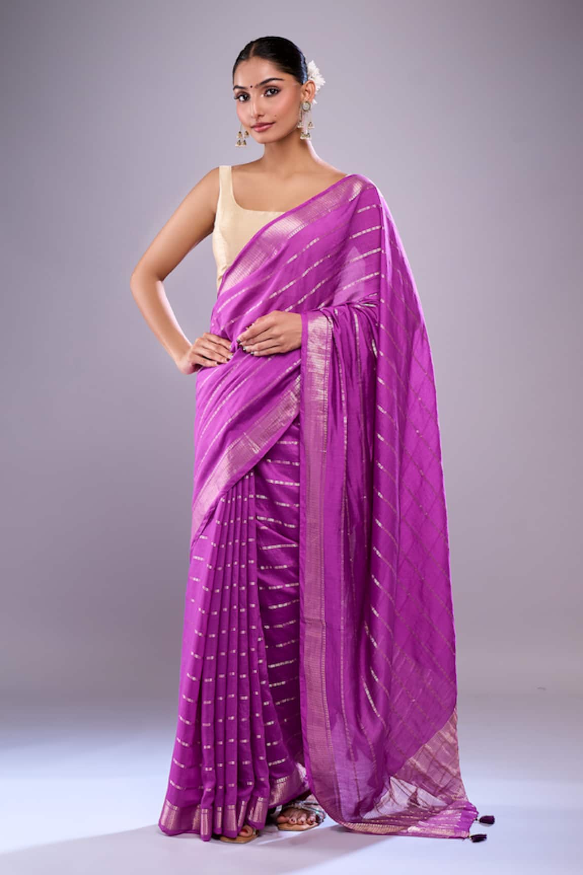 Dressfolk Mandira Chanderi Striped Saree with Running Blouse