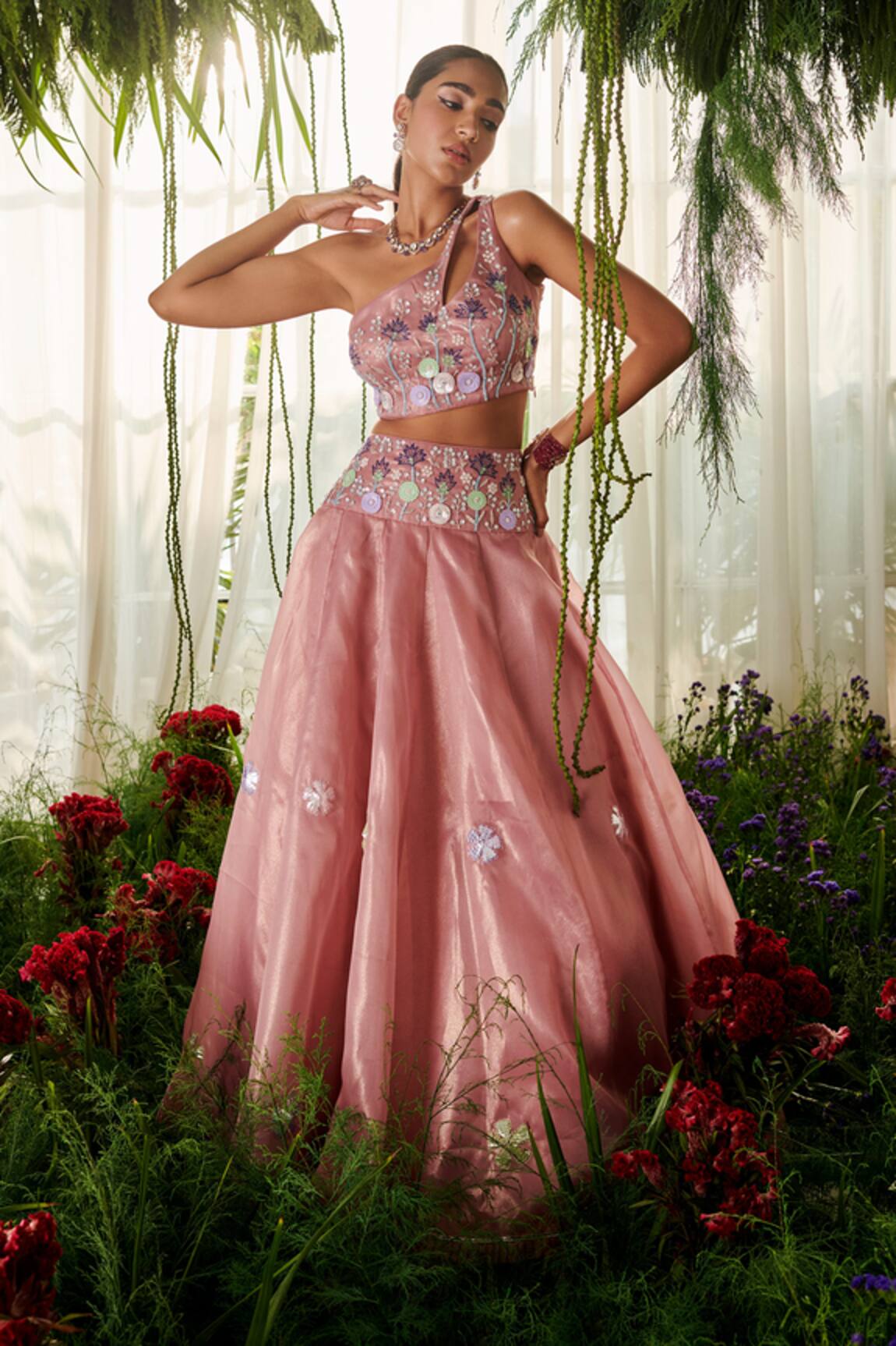 Carnation Sequin & Cutdana Embroidered Lehenga Set