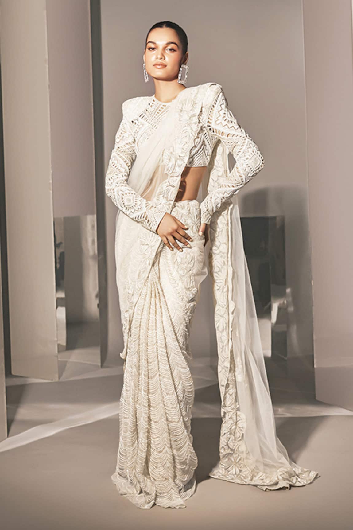 Afsaneh Floral Cutwork Saree Embroidered Blouse Set