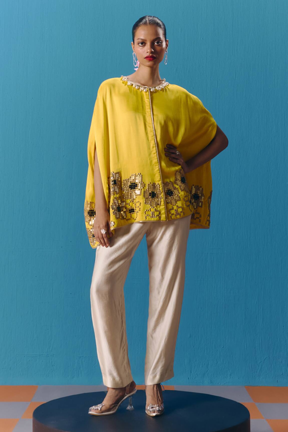 Dawn Floral Embroidered Short Kurta With Petal Pant