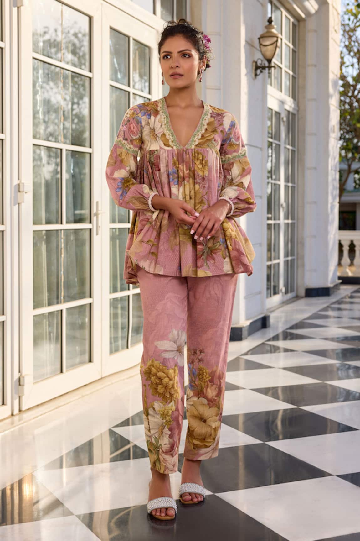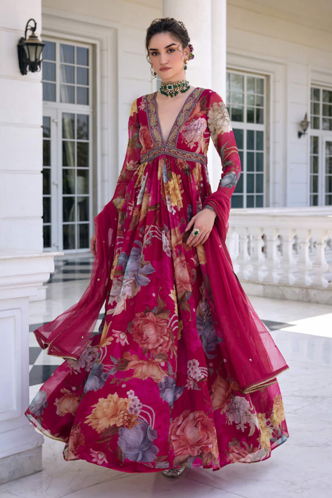 Frida Floral Print Pre-Draped Saree & Blouse Set