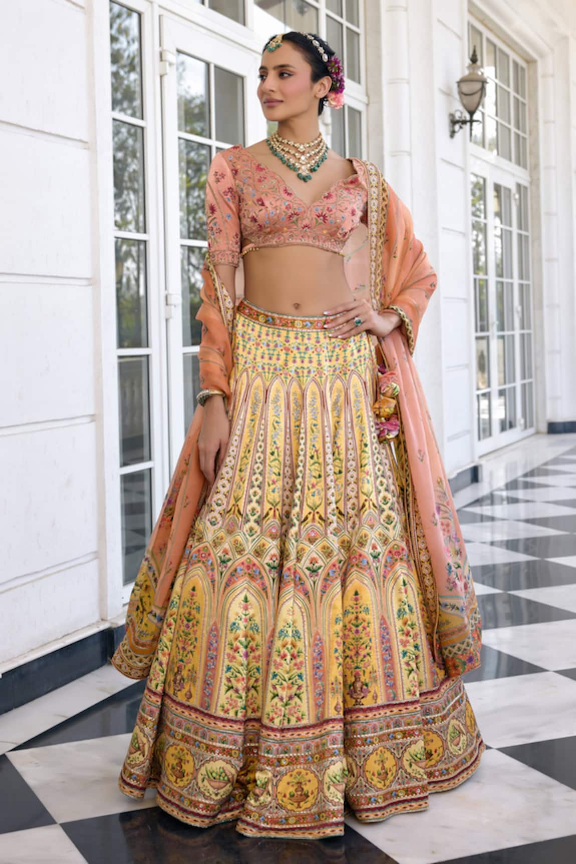 Nehmat Embroidered Peach & Yellow Lehenga Set