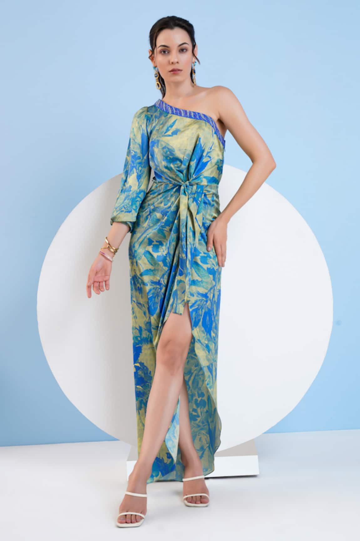 Trippy Romance One Shoulder Printed Kaftan With Belt