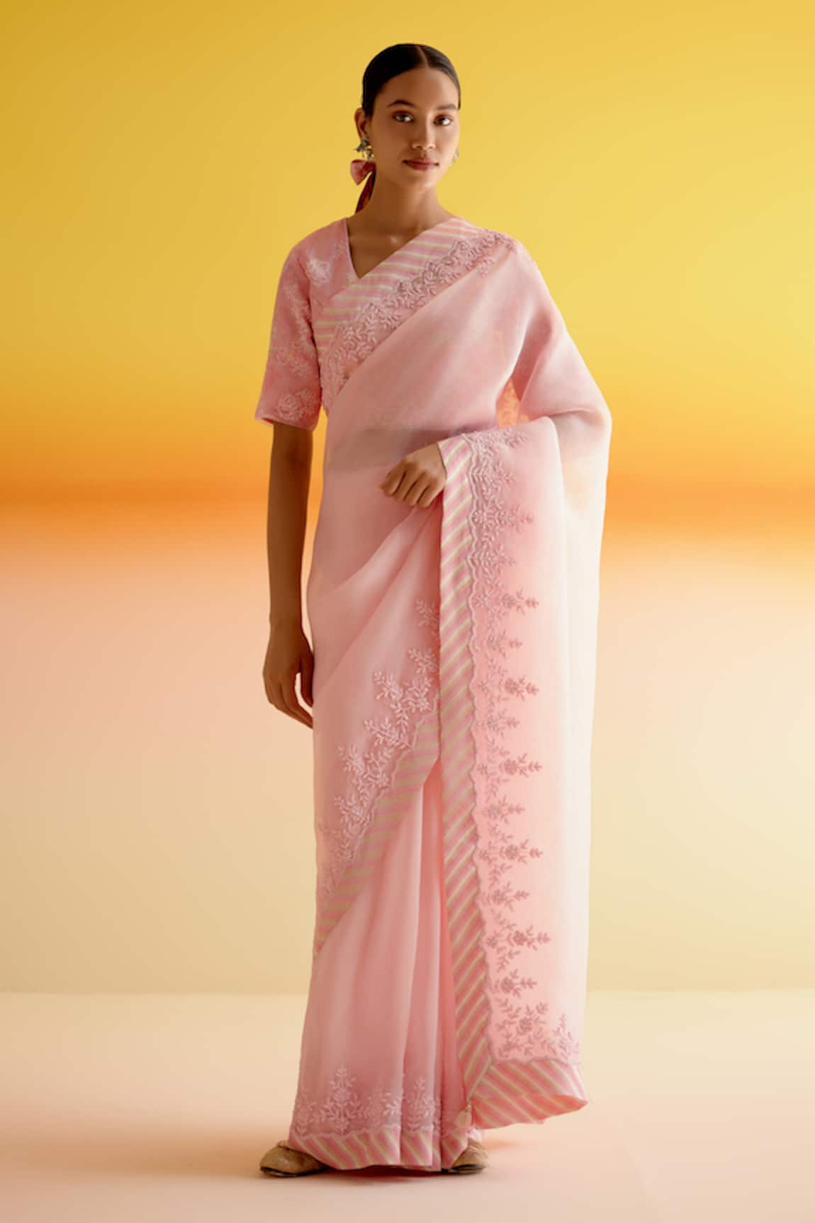 Surbhi Floral Dori Embroidered Saree With Unstitched Blouse Piece