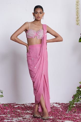 Ruffle Pre-Draped Saree With Embroidered Blouse